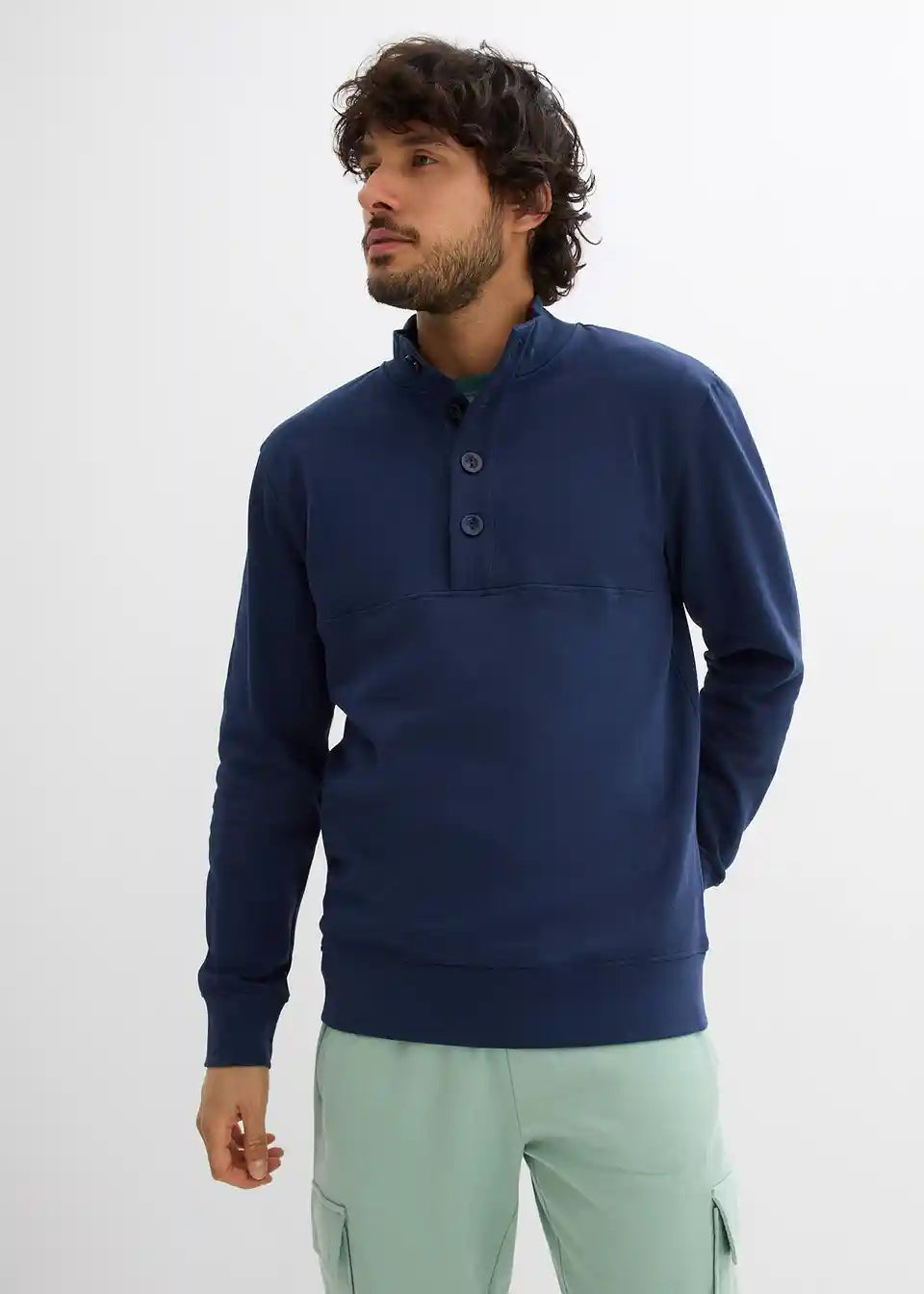 Moderna majica iz trikoja v klasičnem kroju z letvijo z gumbi in rebrasto patentno obrobo v športnems tilu