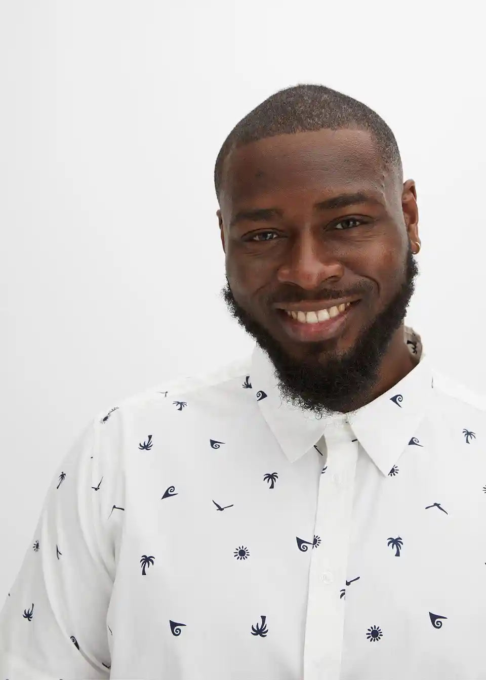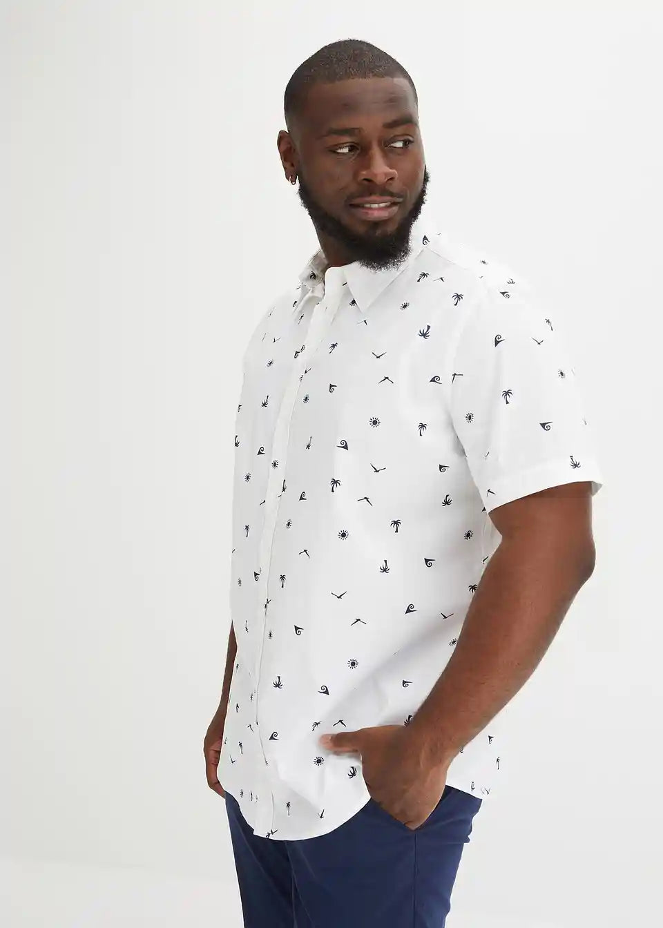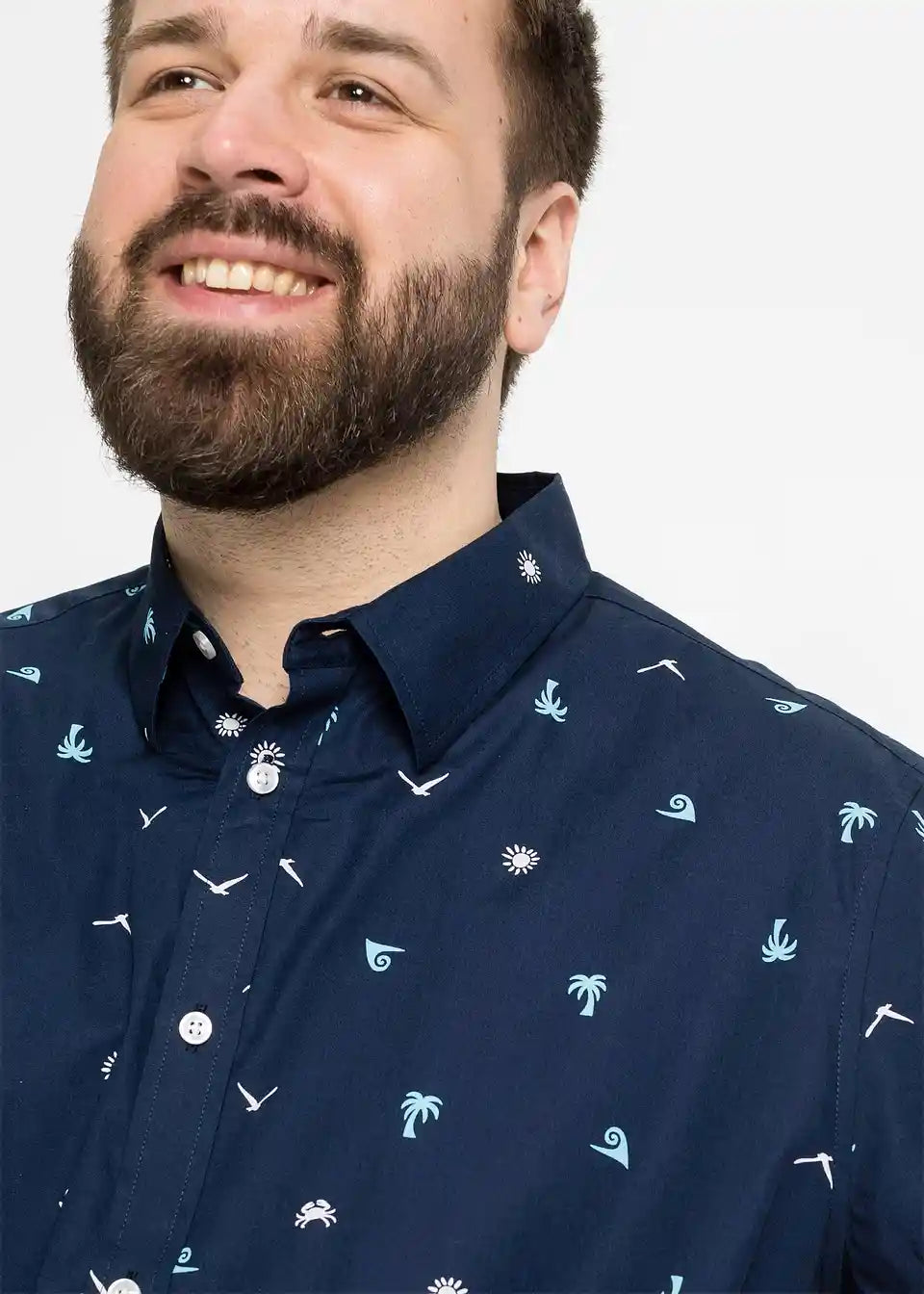 Kratkorokavni srajca s krojem za udobje z poletnim Allover potiskom, pralna v pralnem stroju.