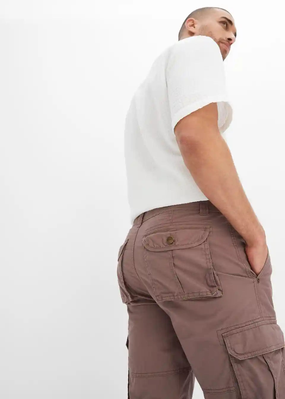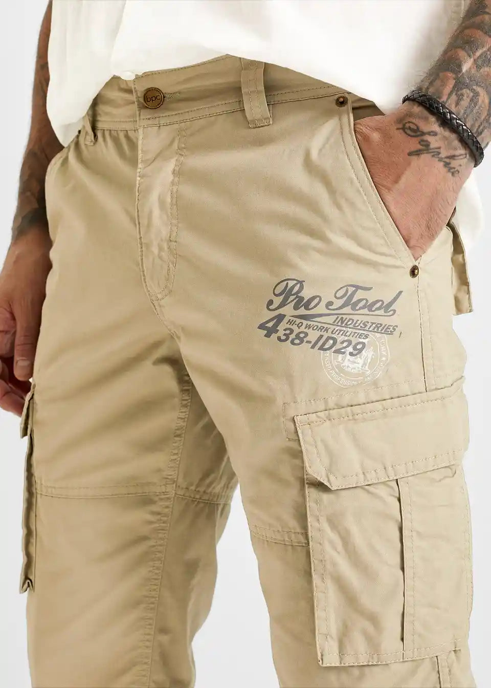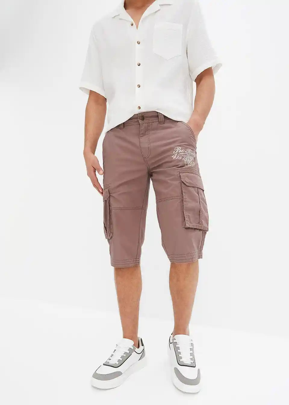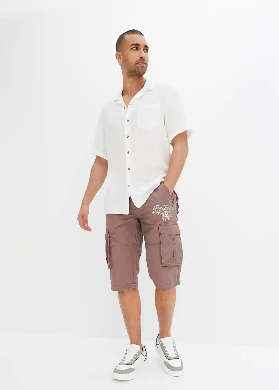 Odličen spremljevalec za tople dni je privlačna moška dolga bermuda znamke bpc, ki se ponaša s sproščeno krojno obliko. Normalno visok pas z zapenjanjem na zadrgo zagotavlja udobno nošenje, ki ga še poudarja ohlapno prileganje. Bočni našiti žepi v cargo slogu poskrbijo za športni pridih, medtem ko potisk nad levim žepom doda čudovite poudarke.