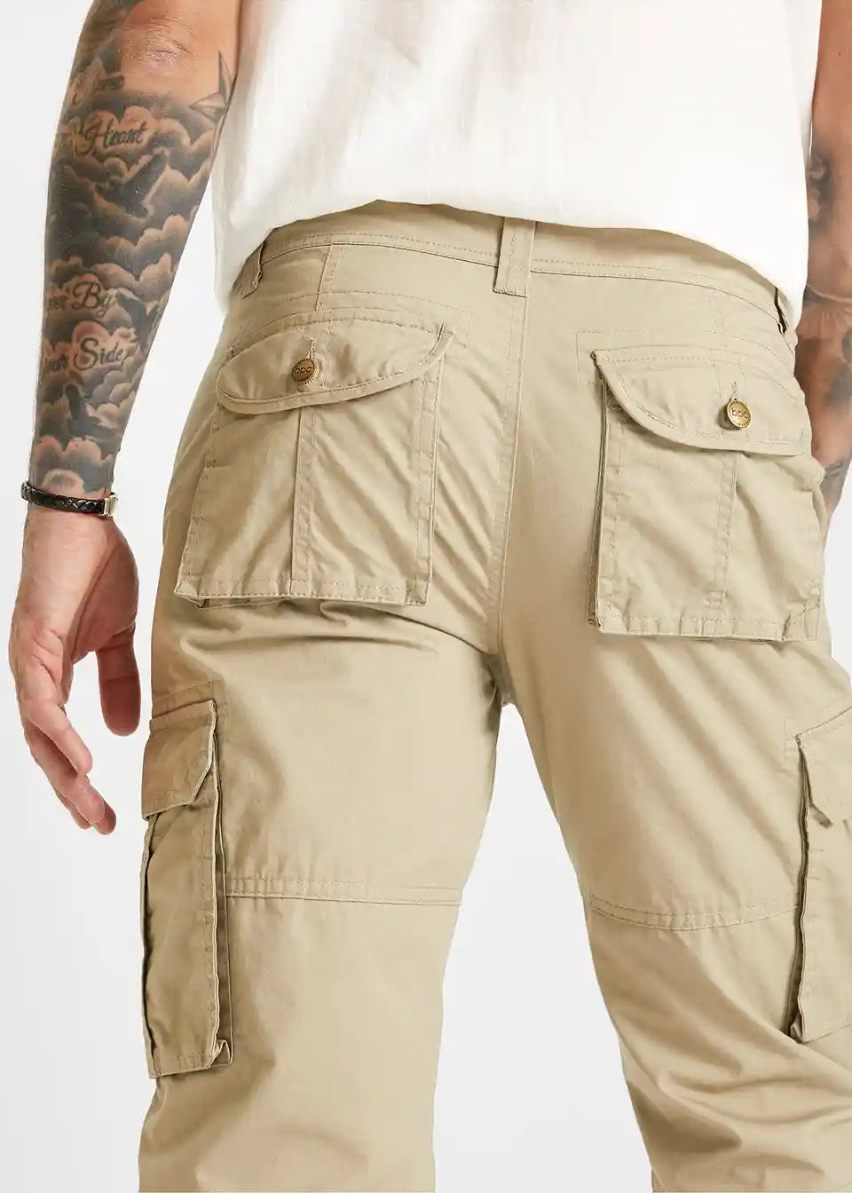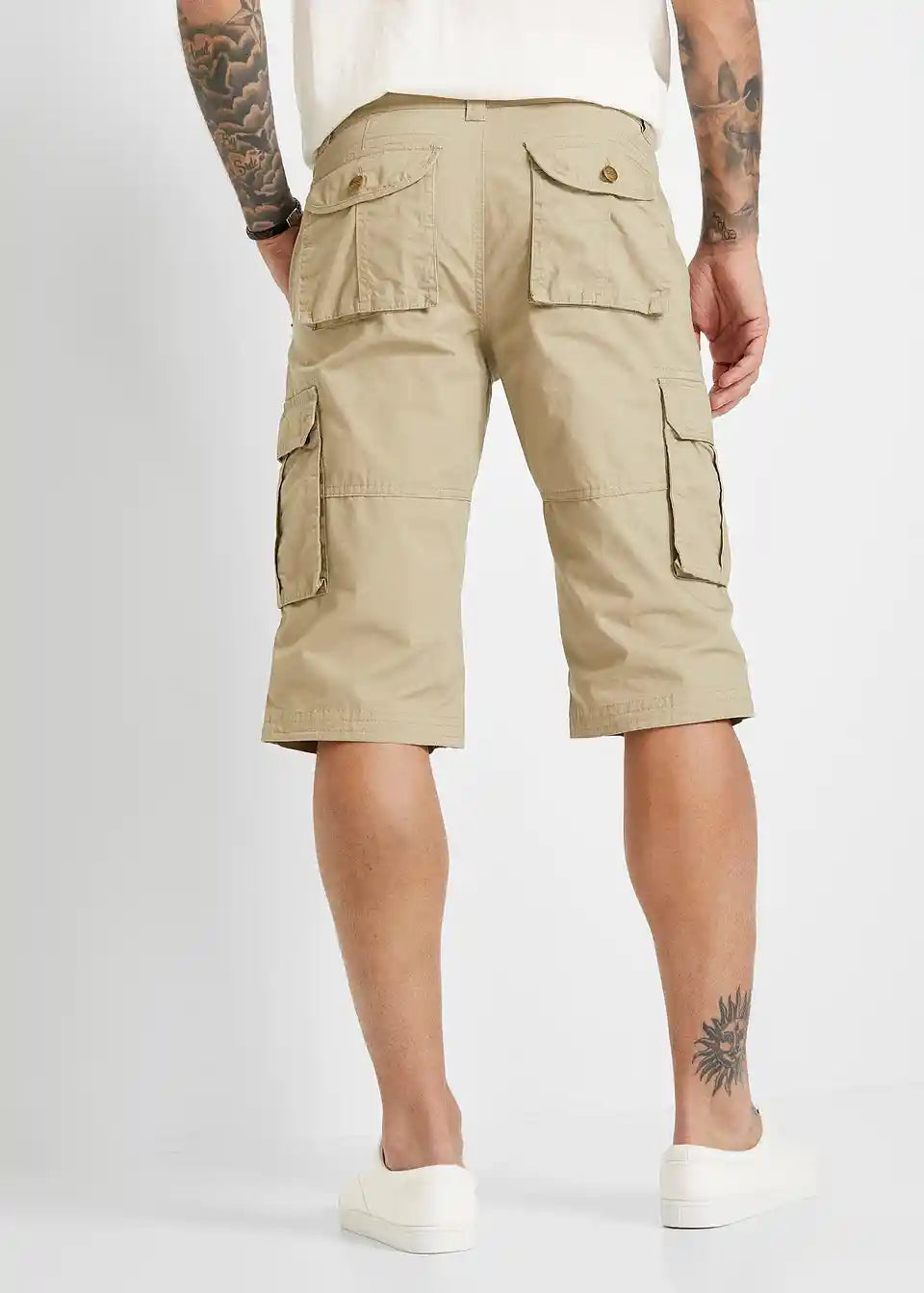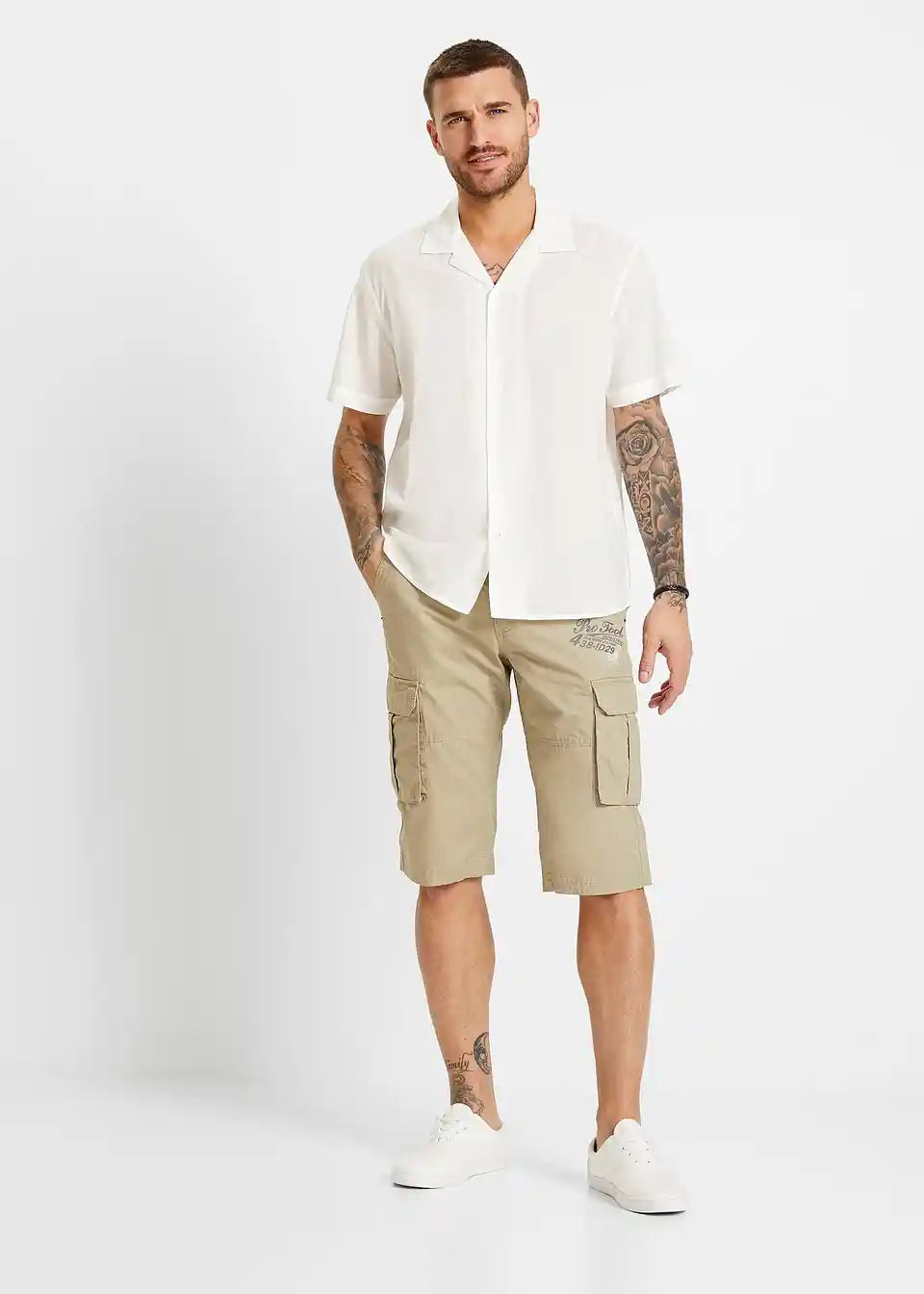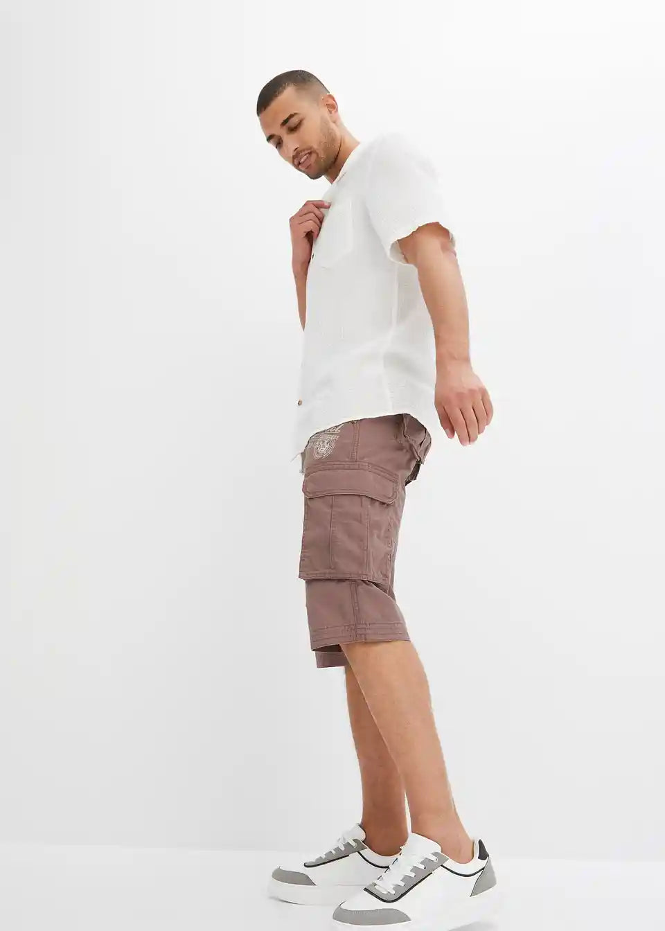 Odličen spremljevalec za tople dni je privlačna moška dolga bermuda znamke bpc, ki se ponaša s sproščeno krojno obliko. Normalno visok pas z zapenjanjem na zadrgo zagotavlja udobno nošenje, ki ga še poudarja ohlapno prileganje. Bočni našiti žepi v cargo slogu poskrbijo za športni pridih, medtem ko potisk nad levim žepom doda čudovite poudarke.