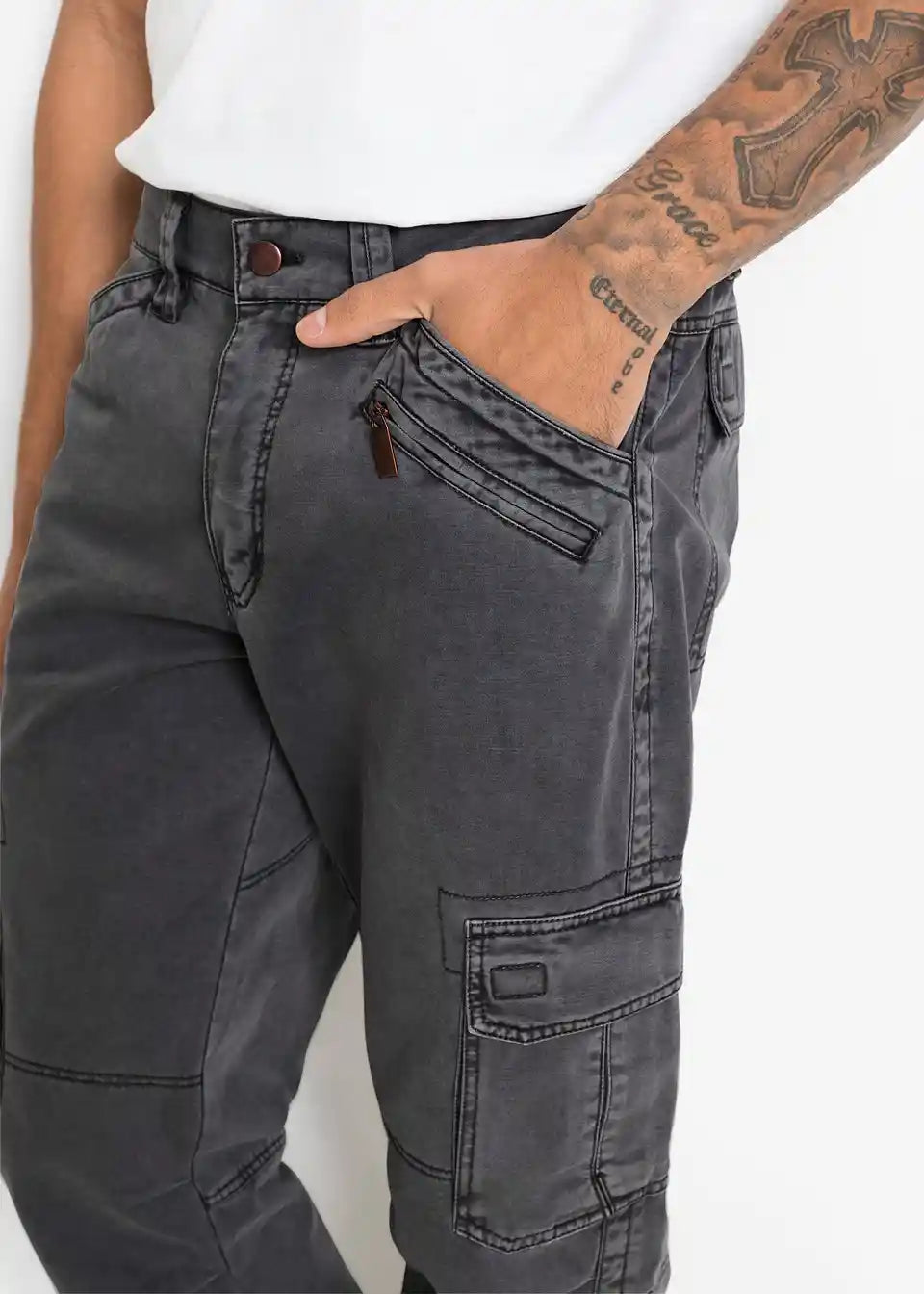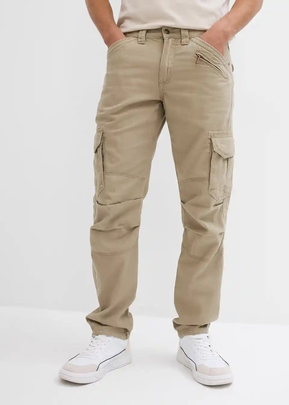 Udobne hlače s cargo žepi iz čistega bombaža v ravnem kroju
