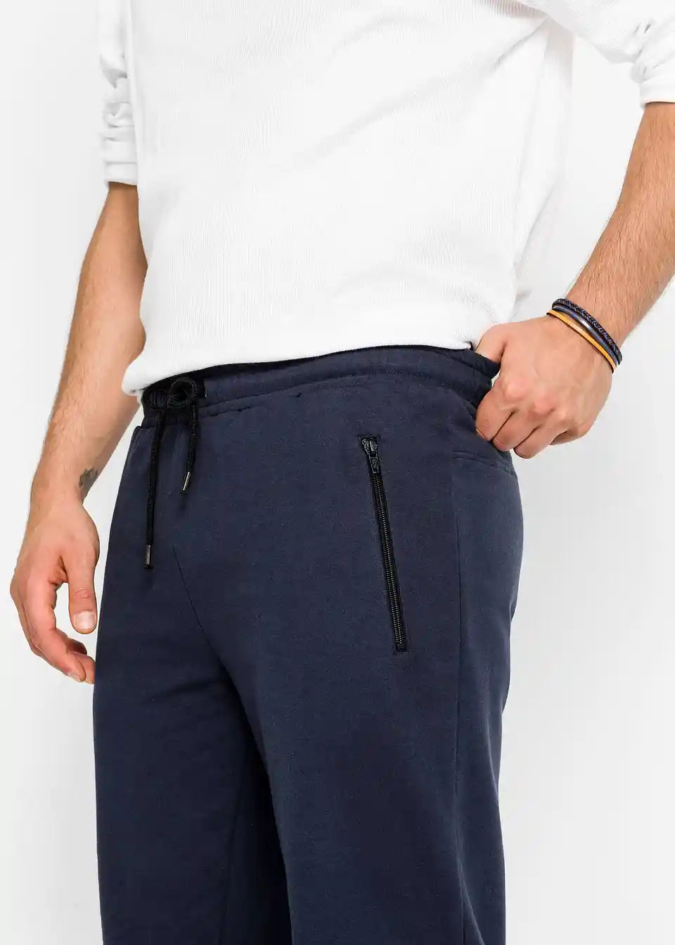 Majhni potiski in paspule s kontrastnim učinkom poudarijo te moške jogging hlače Regular Fit. Ohlapno krojene hlače navdušujejo z dvema stranskima žepoma z zadrgo in enim zadnjim žepom. Prilagodljiv pas z vrvico omogoča regulacijo širine. Jogging hlače iz kolekcije bpc se odlično kombinirajo predvsem s supergami in športnimi oblačili, kot so pulover, majica in pulover s kapuco.