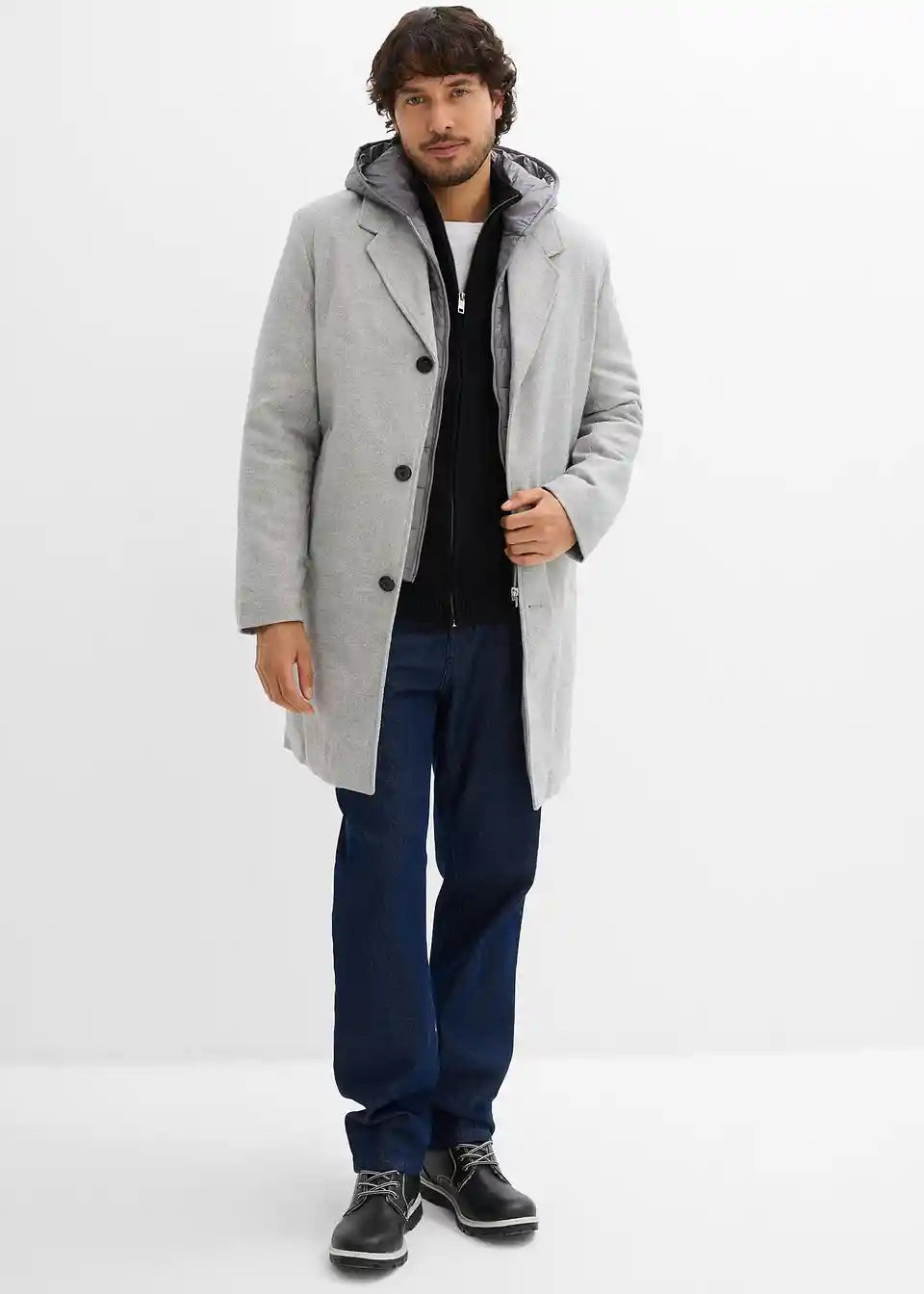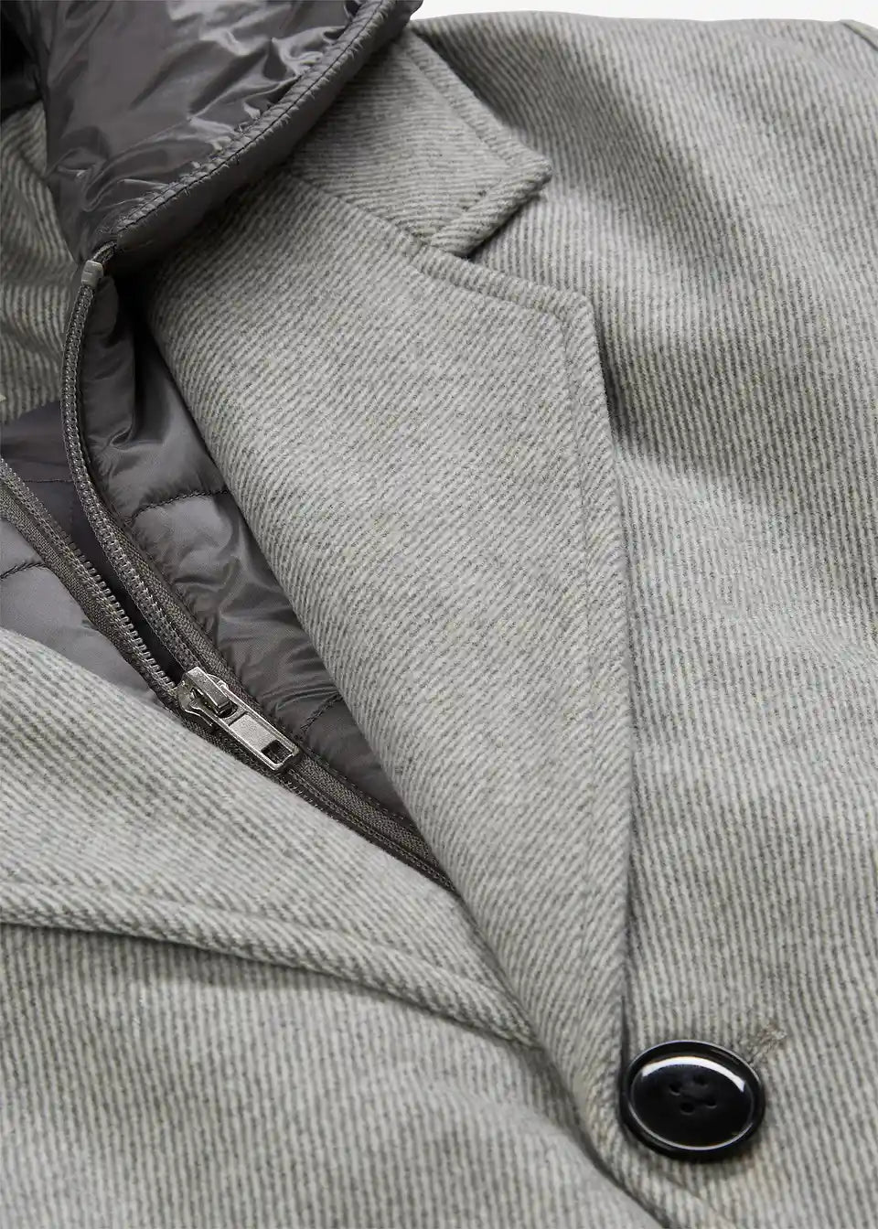 Dvoplastni blazer-plašč s snemljivo všito kapuco