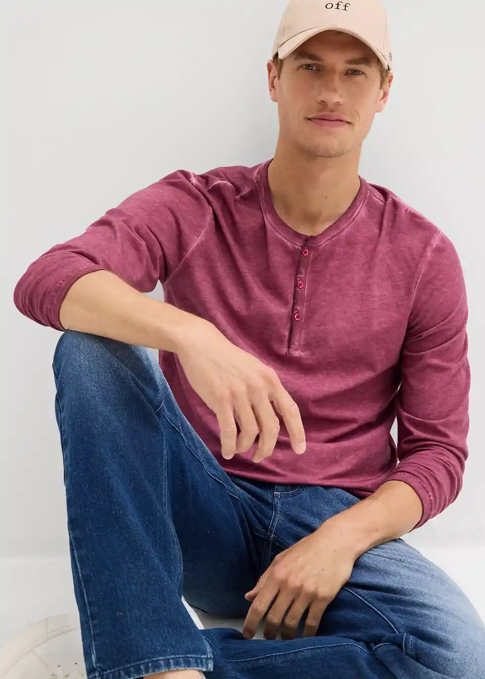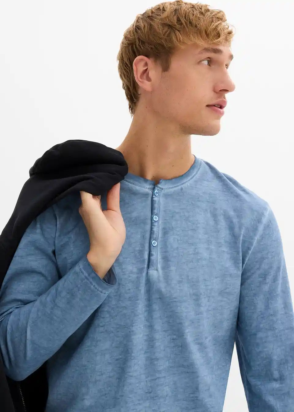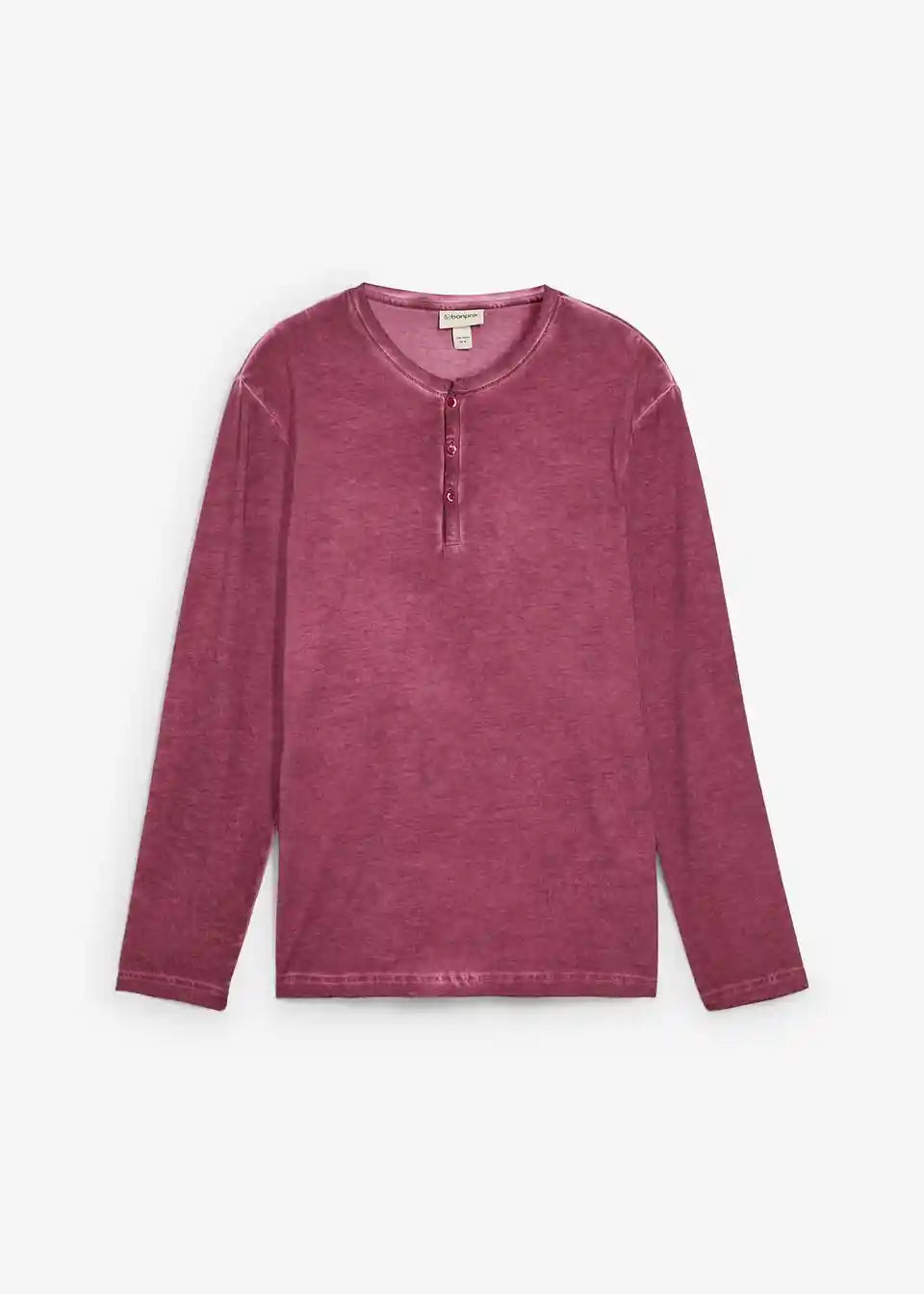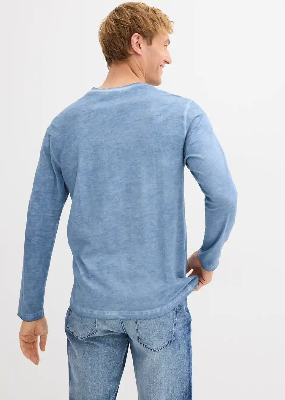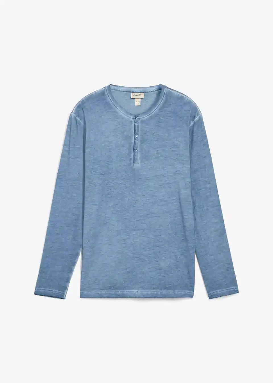 Hanley majica z okroglim ovratnim izrezom z gumbki in dolgimi rokavi v spranem videzu iz čistega ekološkega bombaža