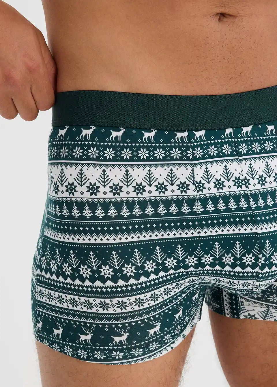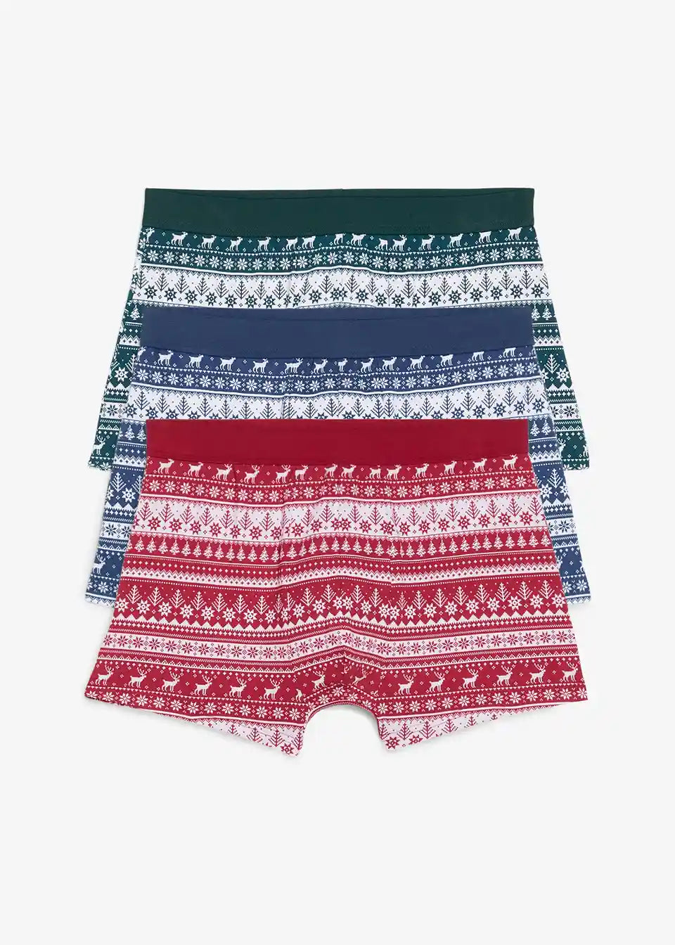 Boksarice z božičnim motivom v oprijetem kroju. V praktičnem 3-delnem setu.