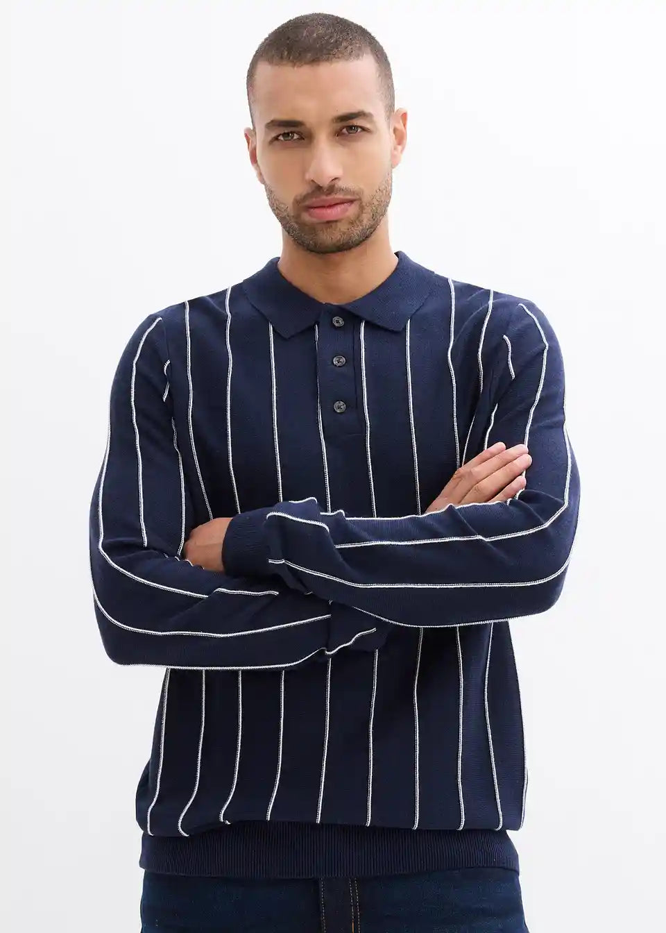 Fino pleten pulover z nevpadljivimi črtami