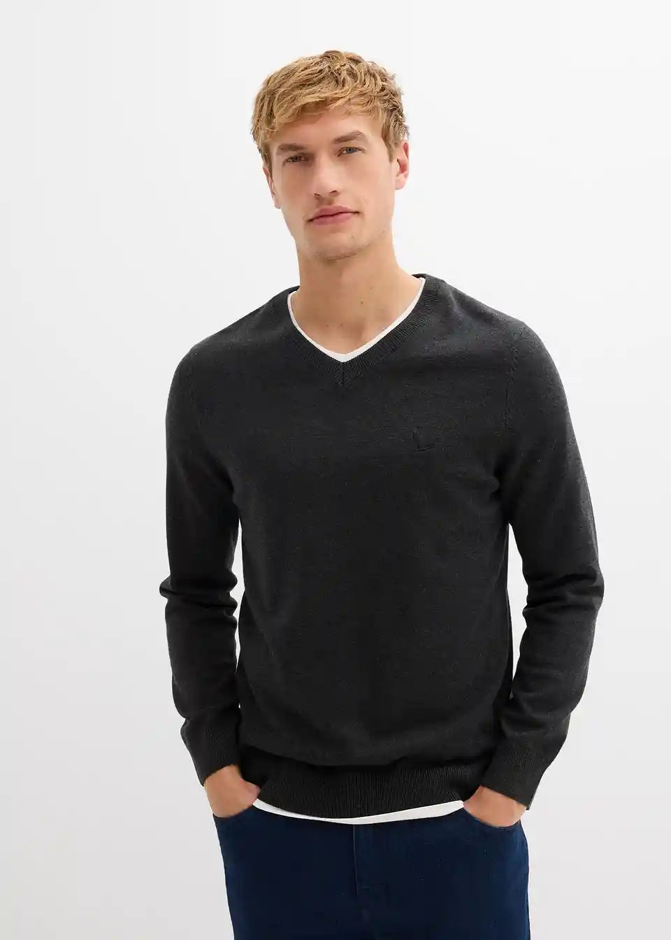 Moderen klasičen pulover iz za kožo prijaznega bombaža z majhno vezenino
