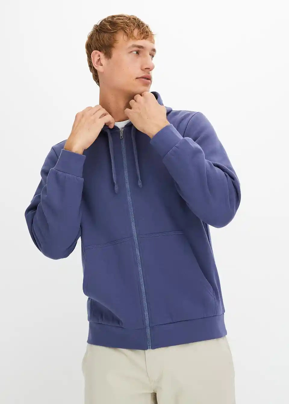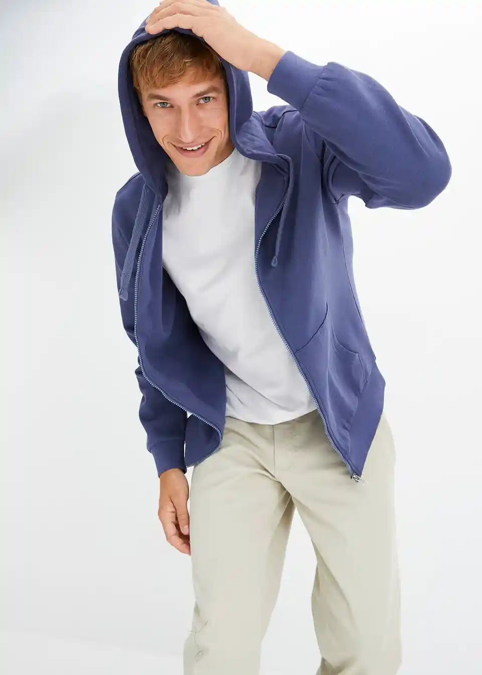 Udoben moški pulover s kapuco. Zadrga in kenguru žepi na sprednji strani omogočajo lahek vstop. Notranja stran je mehko brušena, kar zagotavlja visoko udobje pri nošenju. Dolžina prilagojena velikosti, dolžina pri vel. 48/50 pribl. 73 cm. Regular Fit