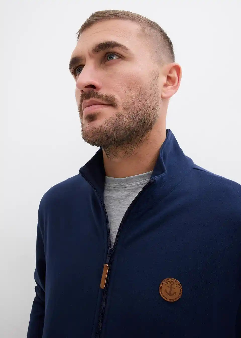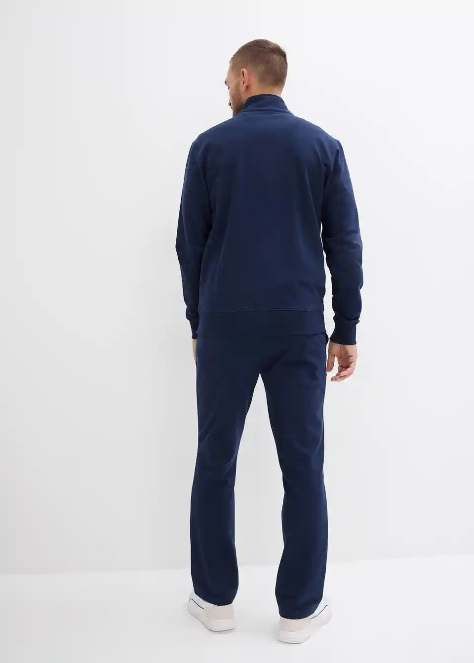 Trenirke iz ekološkega bombaža. 2-deleni komplet s zgornjim delom z stoječim ovratnikom in všitimi žepi ter z ravno krojenimi hlačami prav tako z žepi
