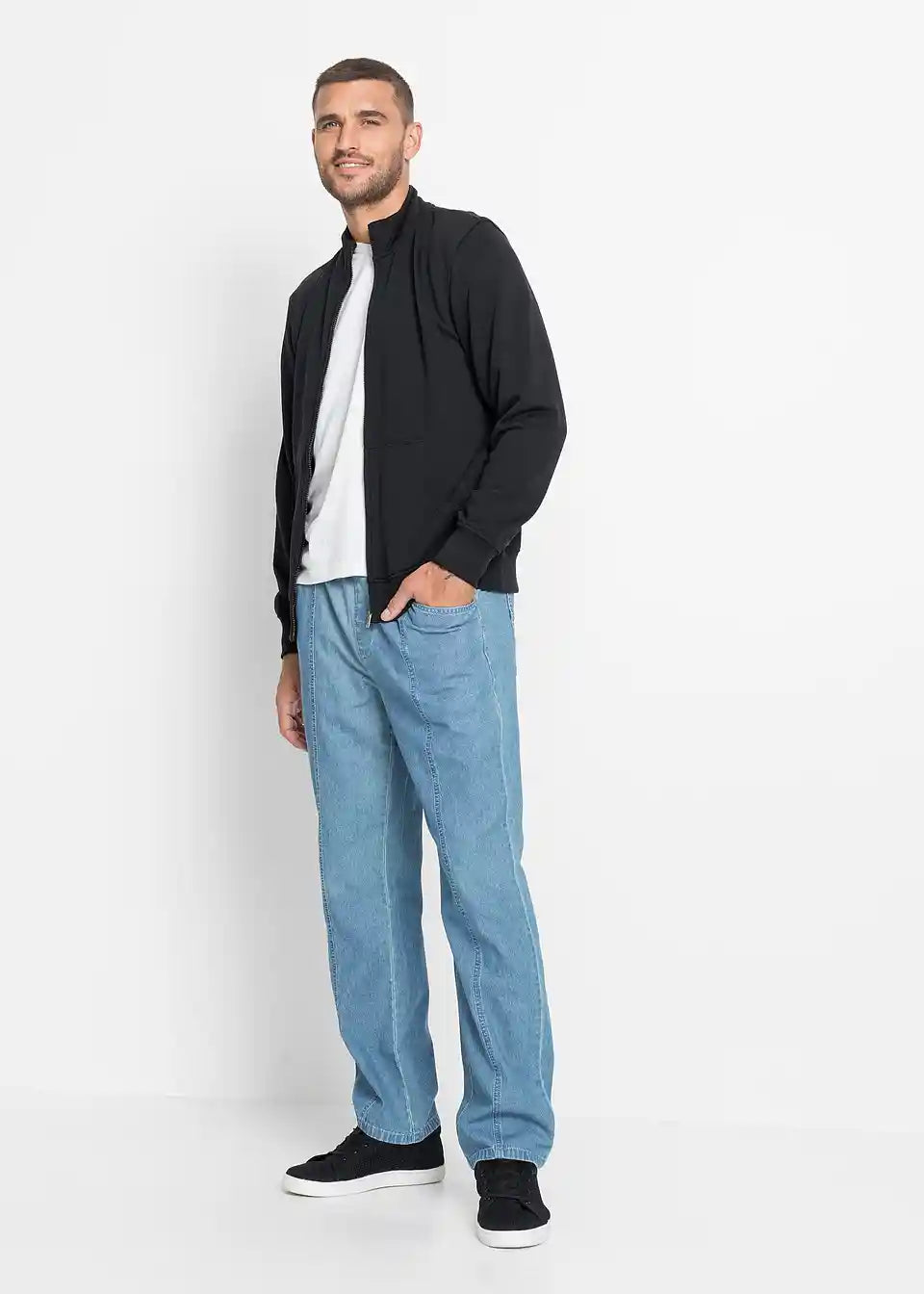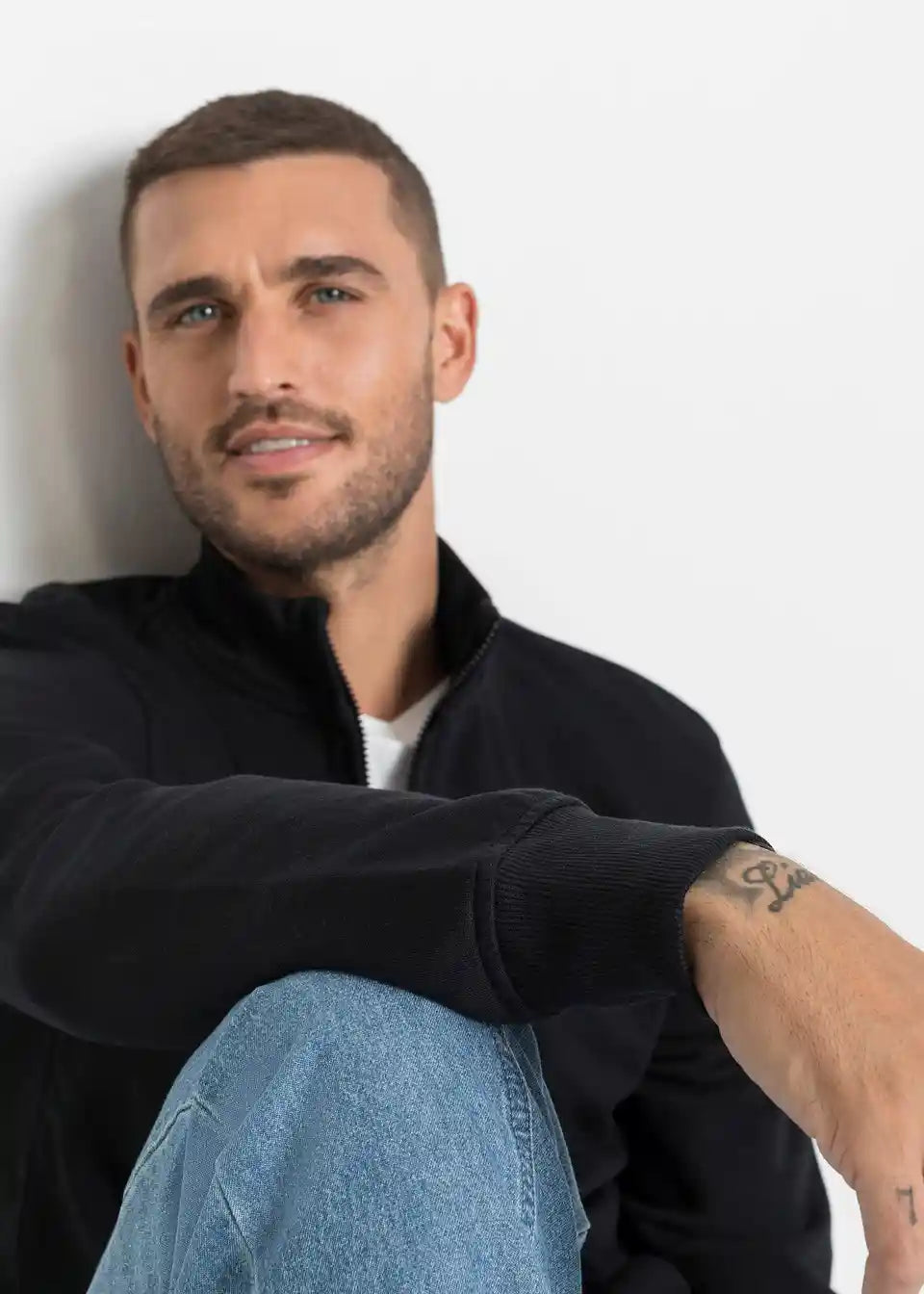 Športna moška znojna jakna z stoječim ovratnikom in kenguru žepi, znotraj mehko kosmatena.