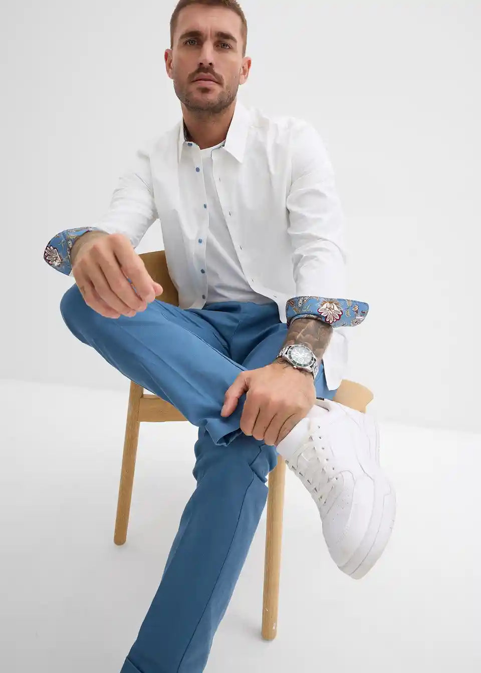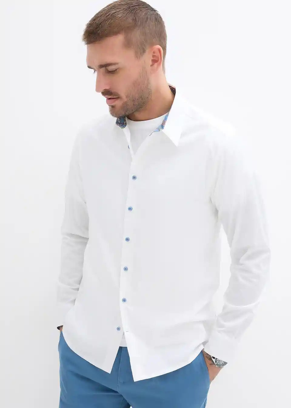 Poslovna srajca s kontrastnimi detajli iz čistega bombaža v klasičnem kroju