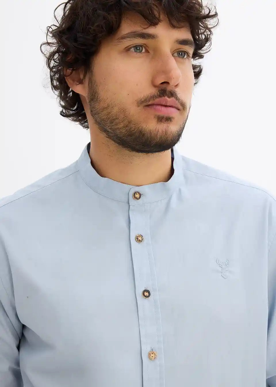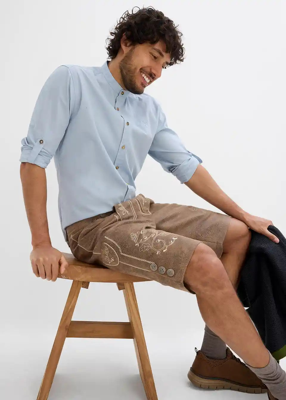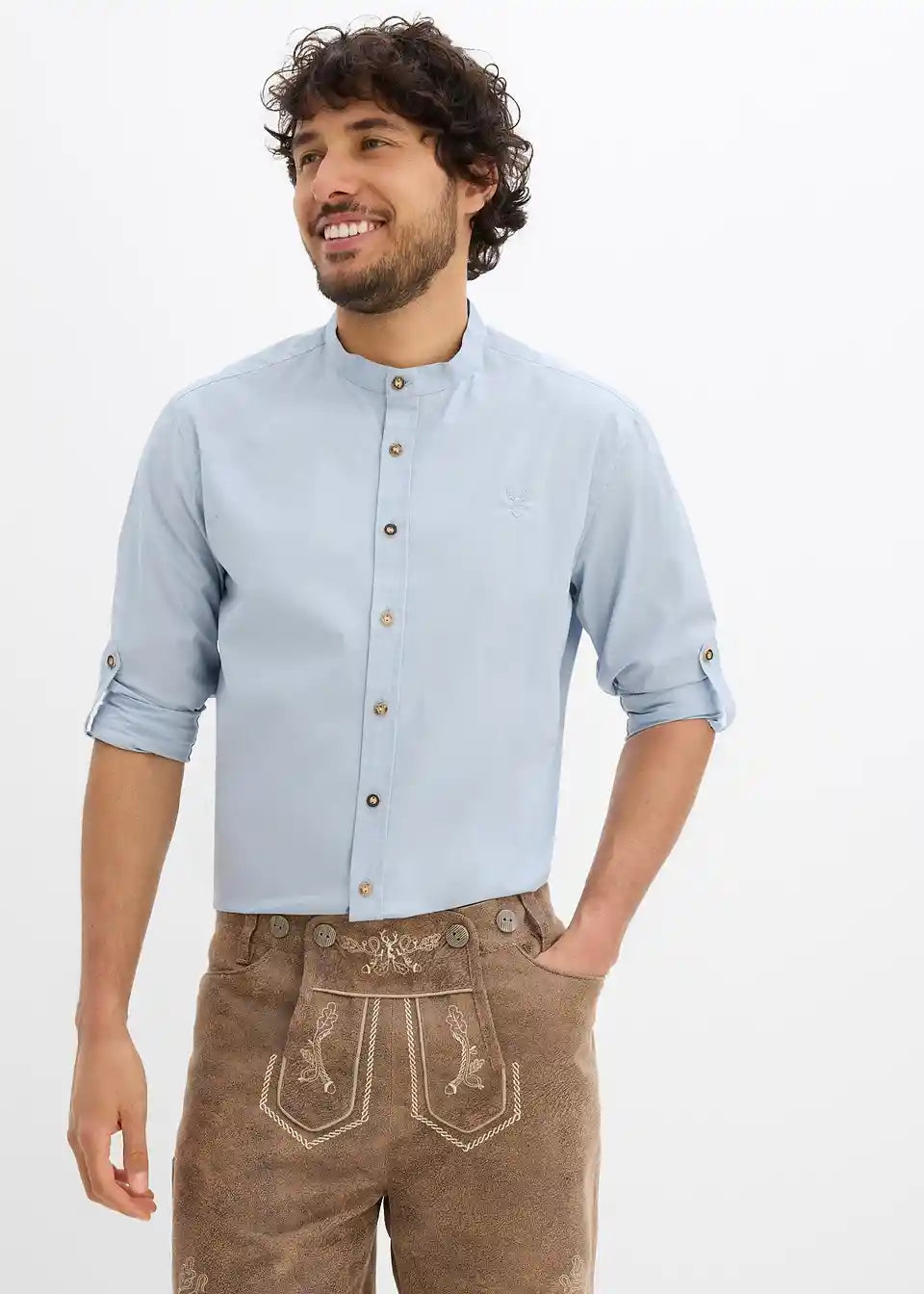 Bavarska tradicionalna srajca s pritrjenimi rokavi in gumbi v videzu roga - popolna za Oktoberfest
