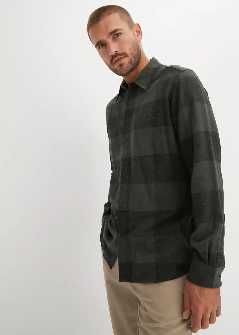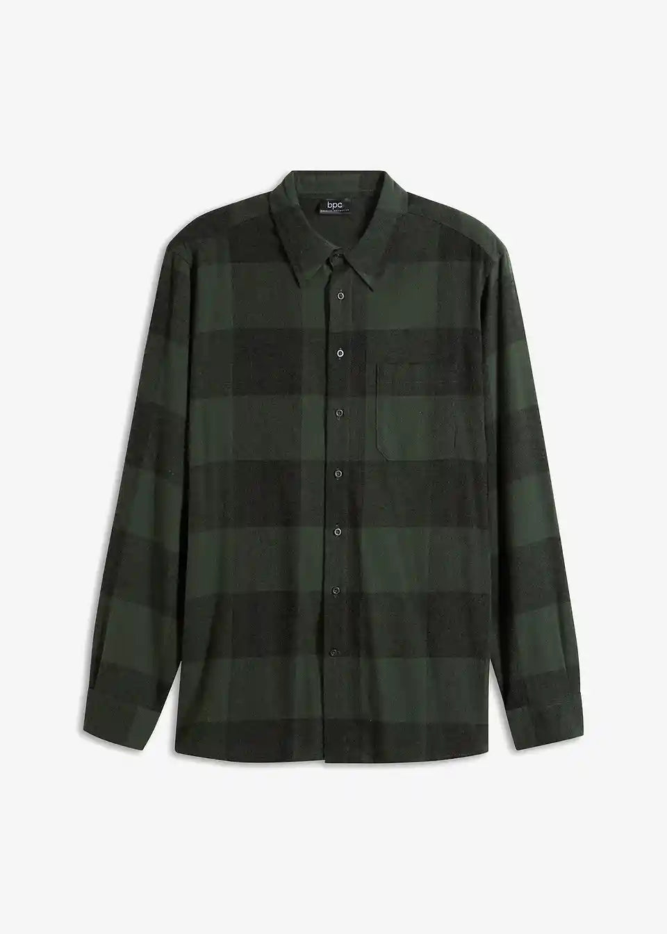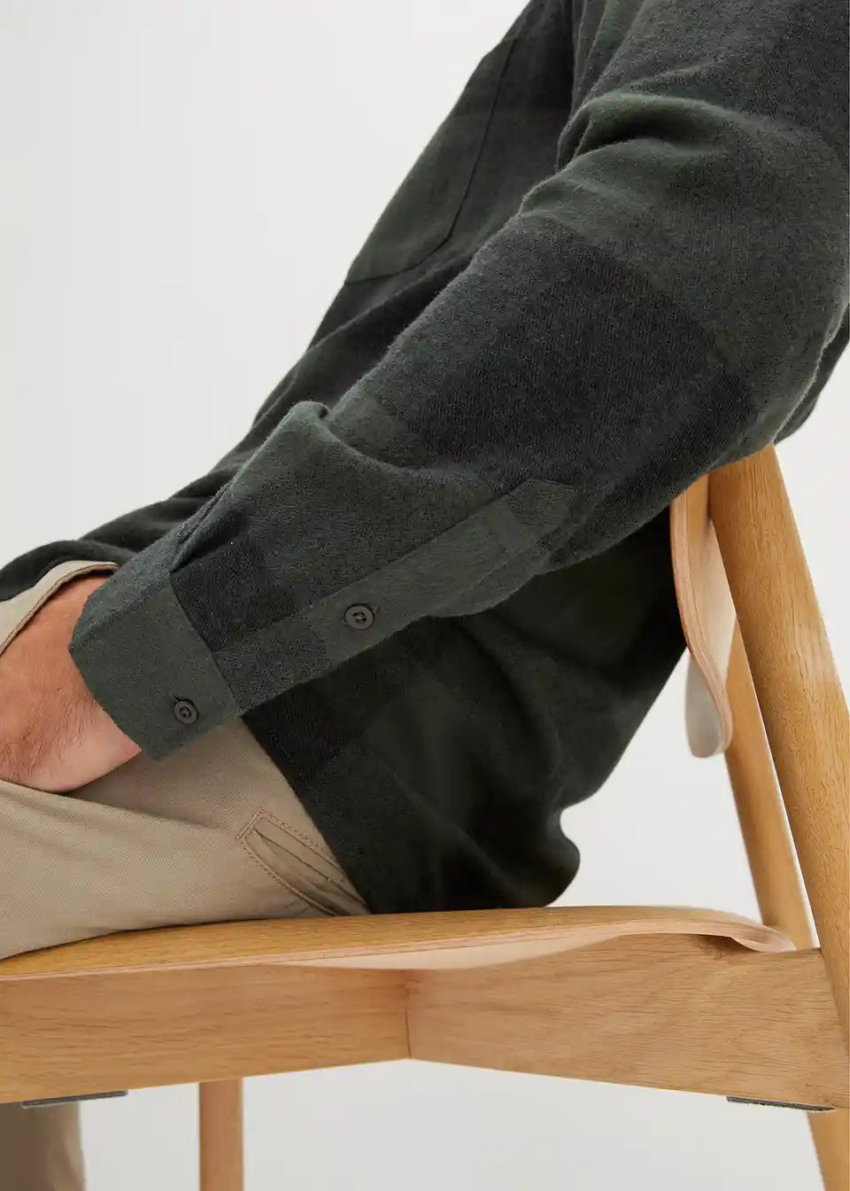 Modna flanelasta srajca s karirastim vzorcem in zaobljenim robom
