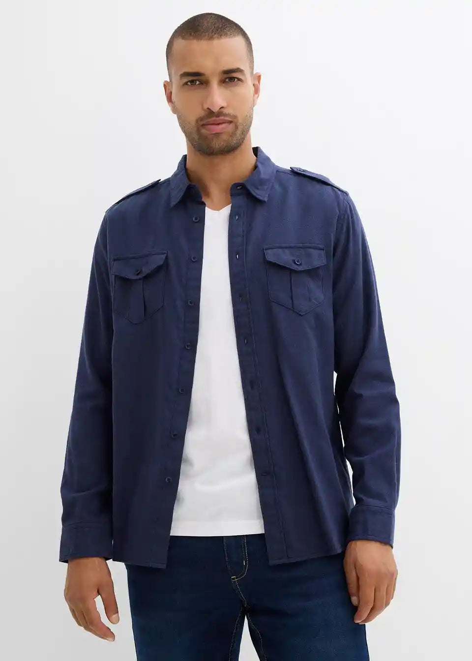 Zapovedana srajca iz flanele s kentskim ovratnikom in naprsnima žepoma