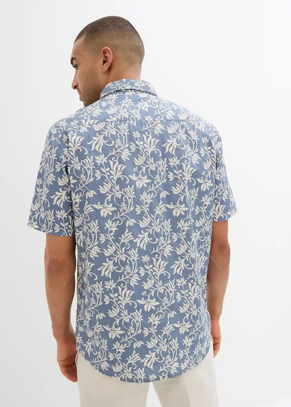 Lahka moška srajca s kratkimi rokavi in cvetličnim potiskom
