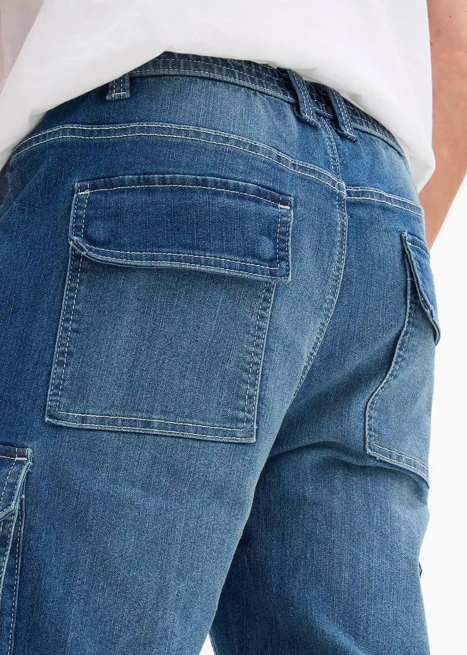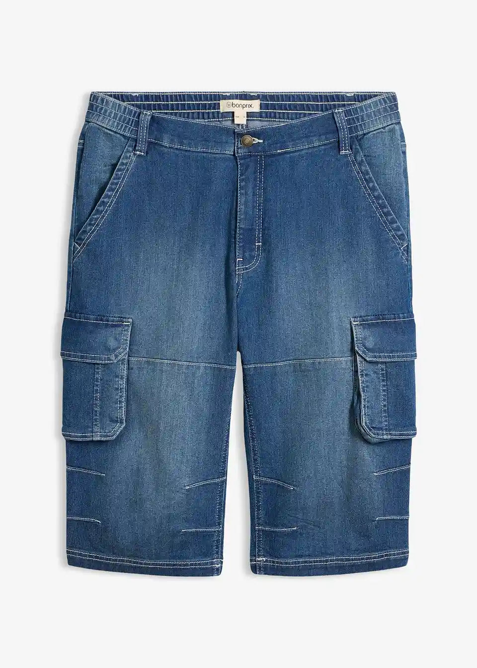 Lahke bermuda kavbojke s cargo žepi in raztegljivim pasom v klasičnem kroju