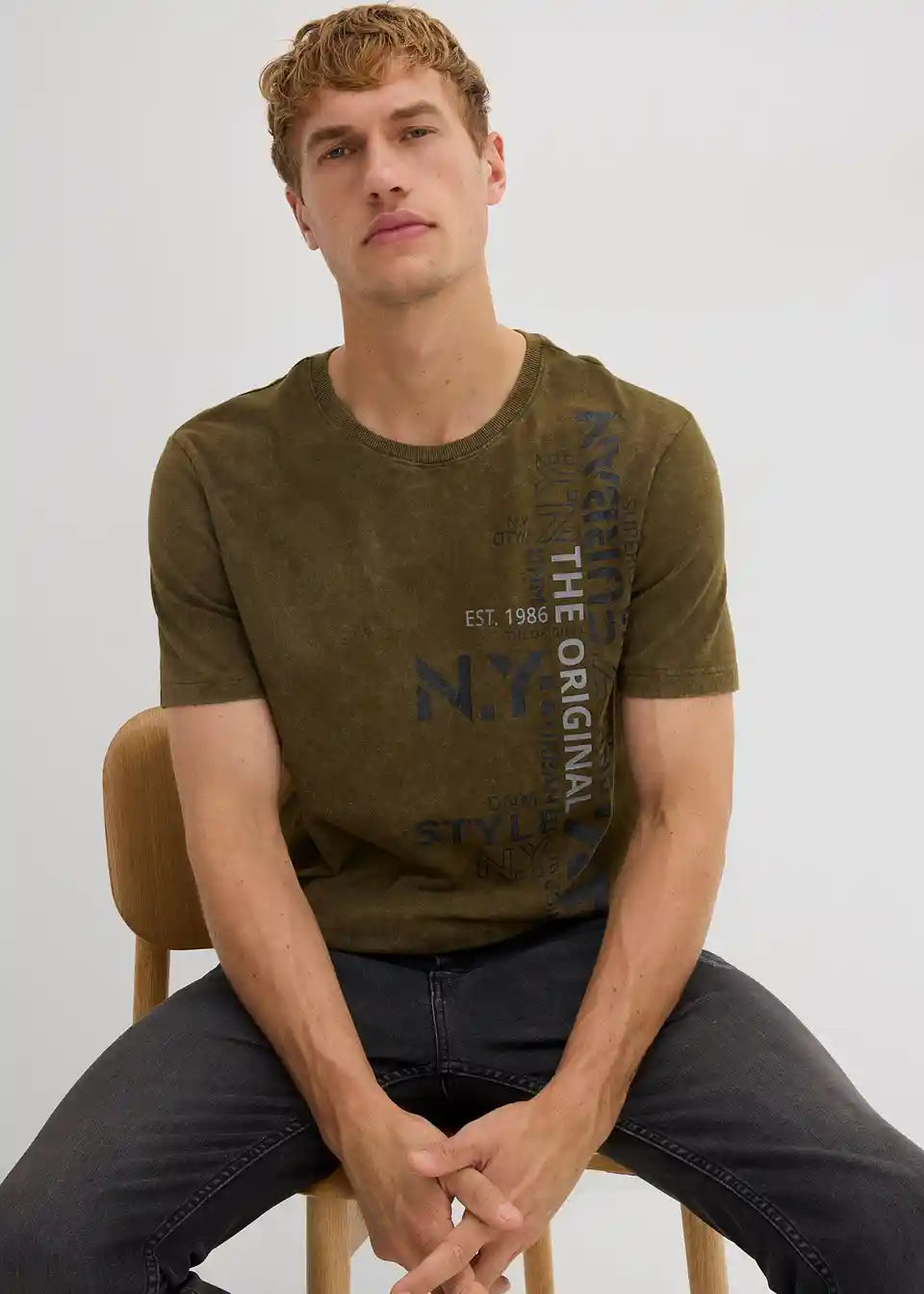 T-Shirt majica v spranem videzu iz čistega ekološkega bombaža