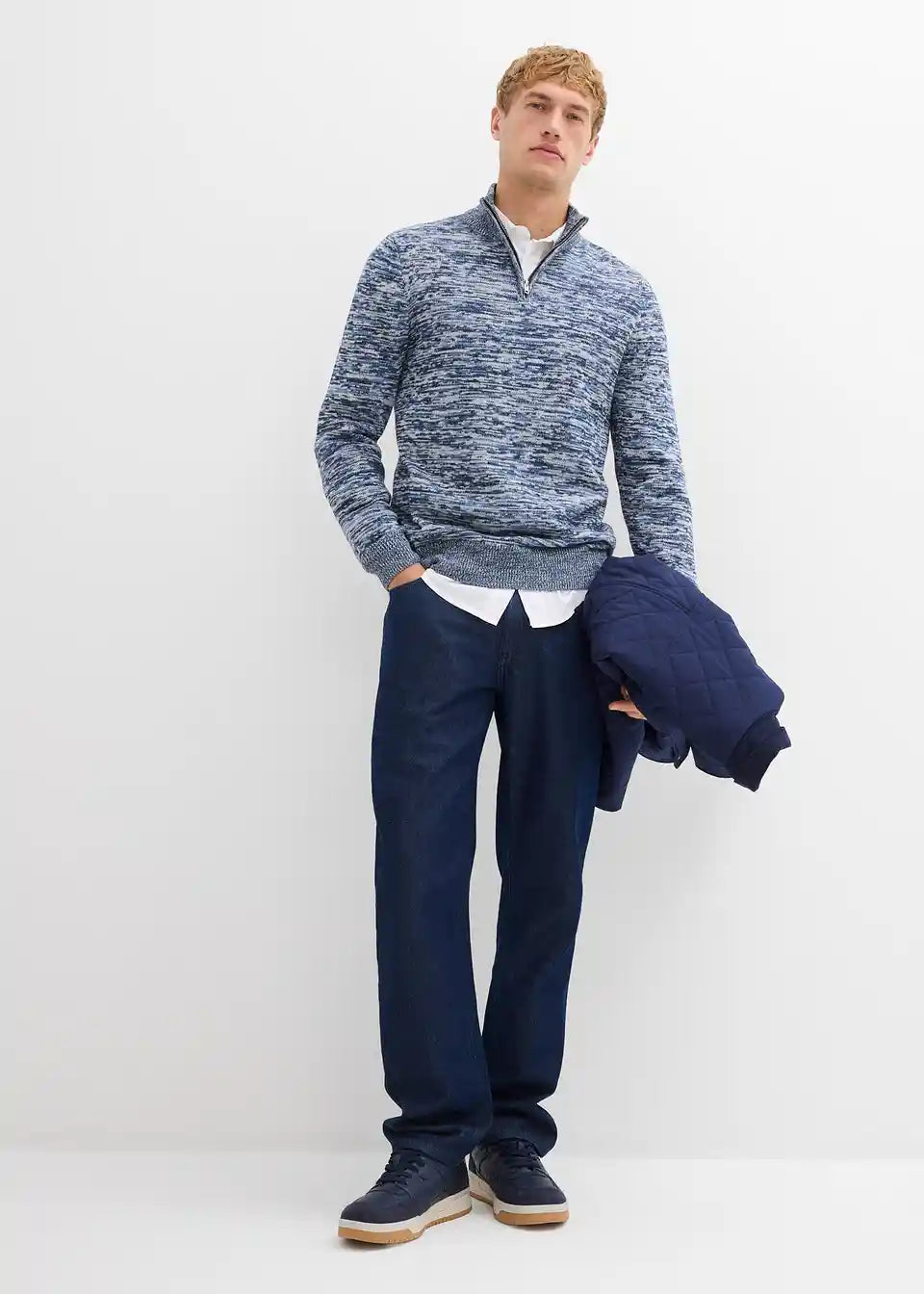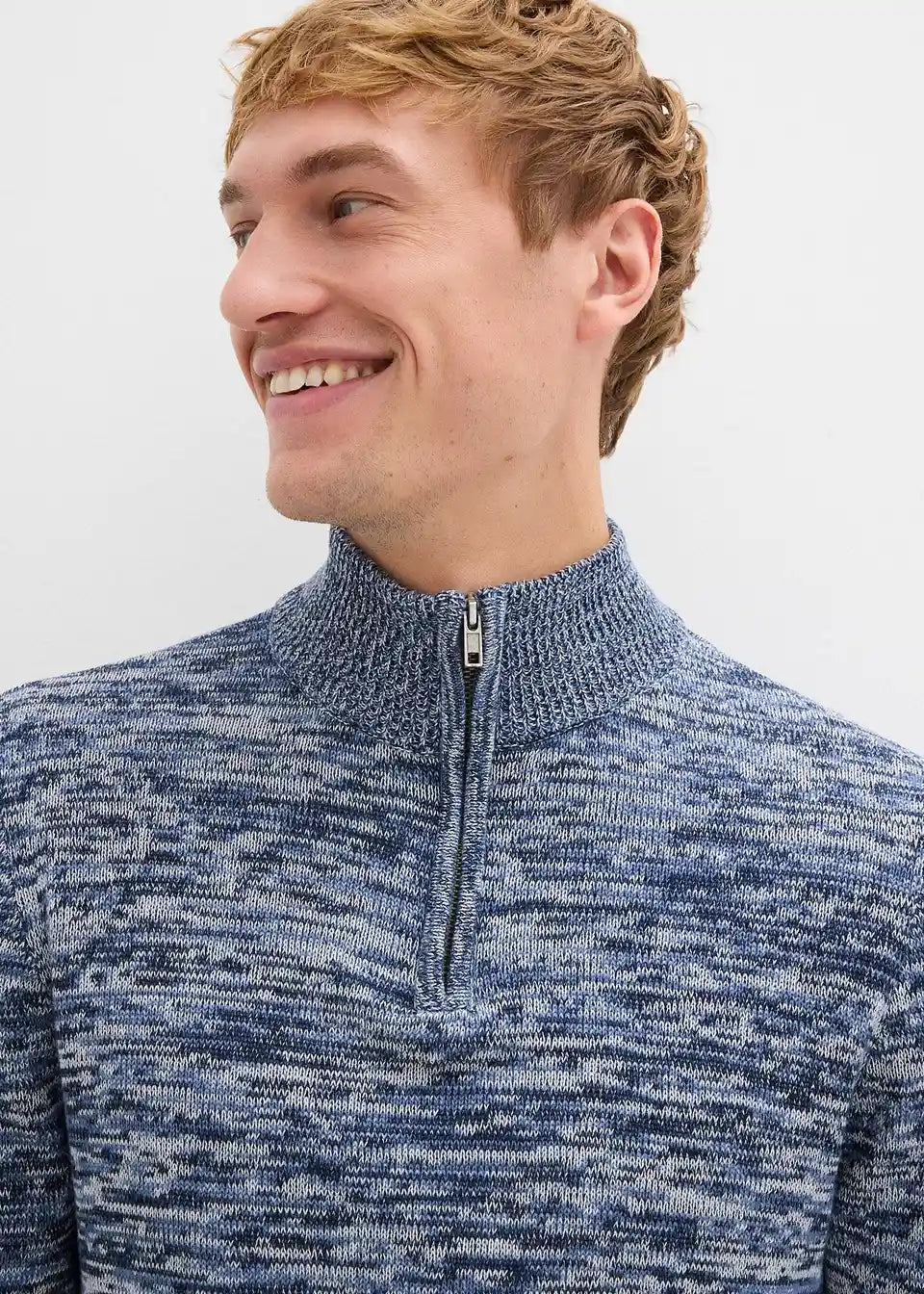 Izjemen pulover s trojanskim ovratnikom v meliranem videzu