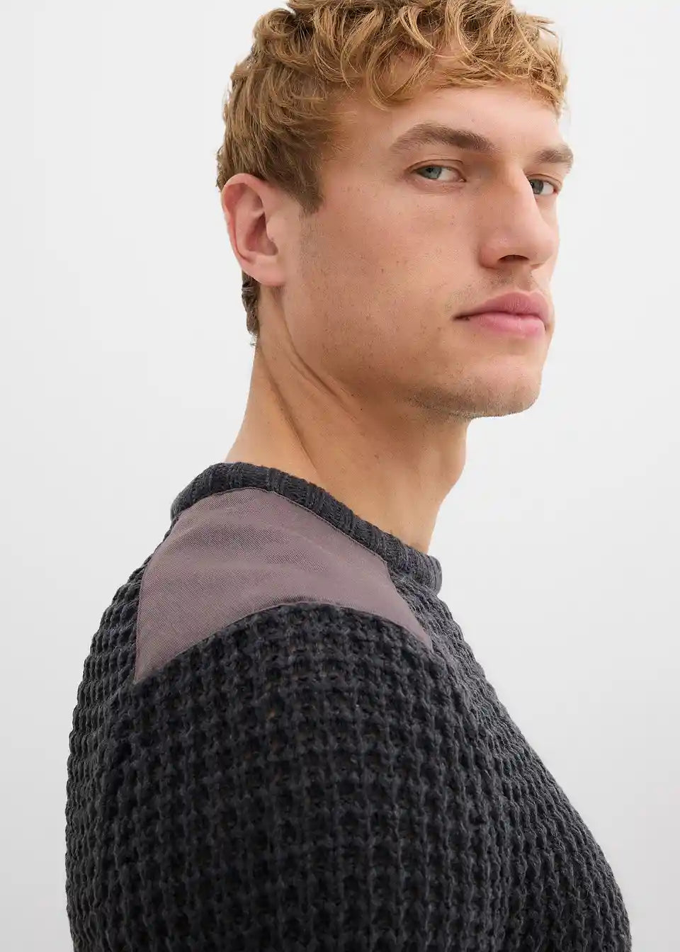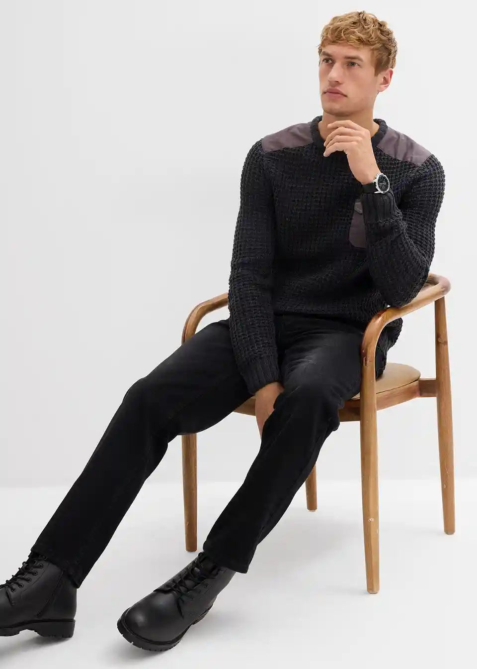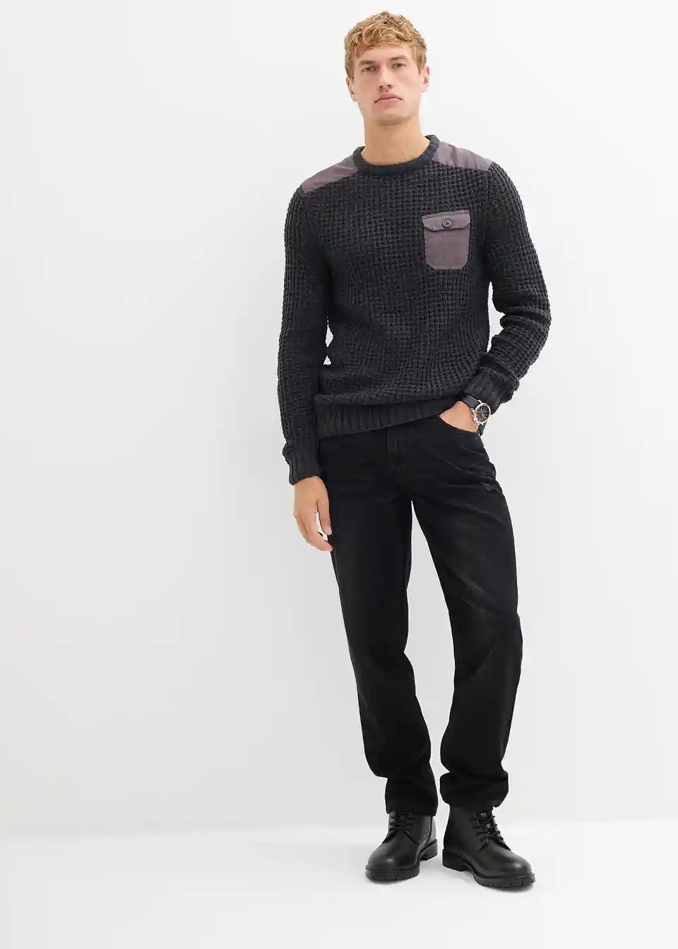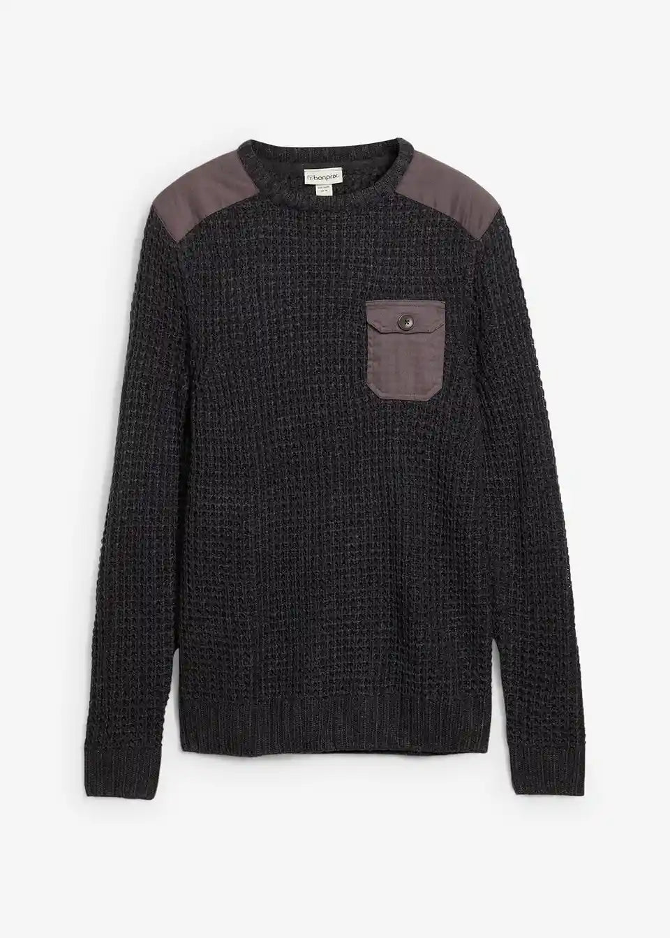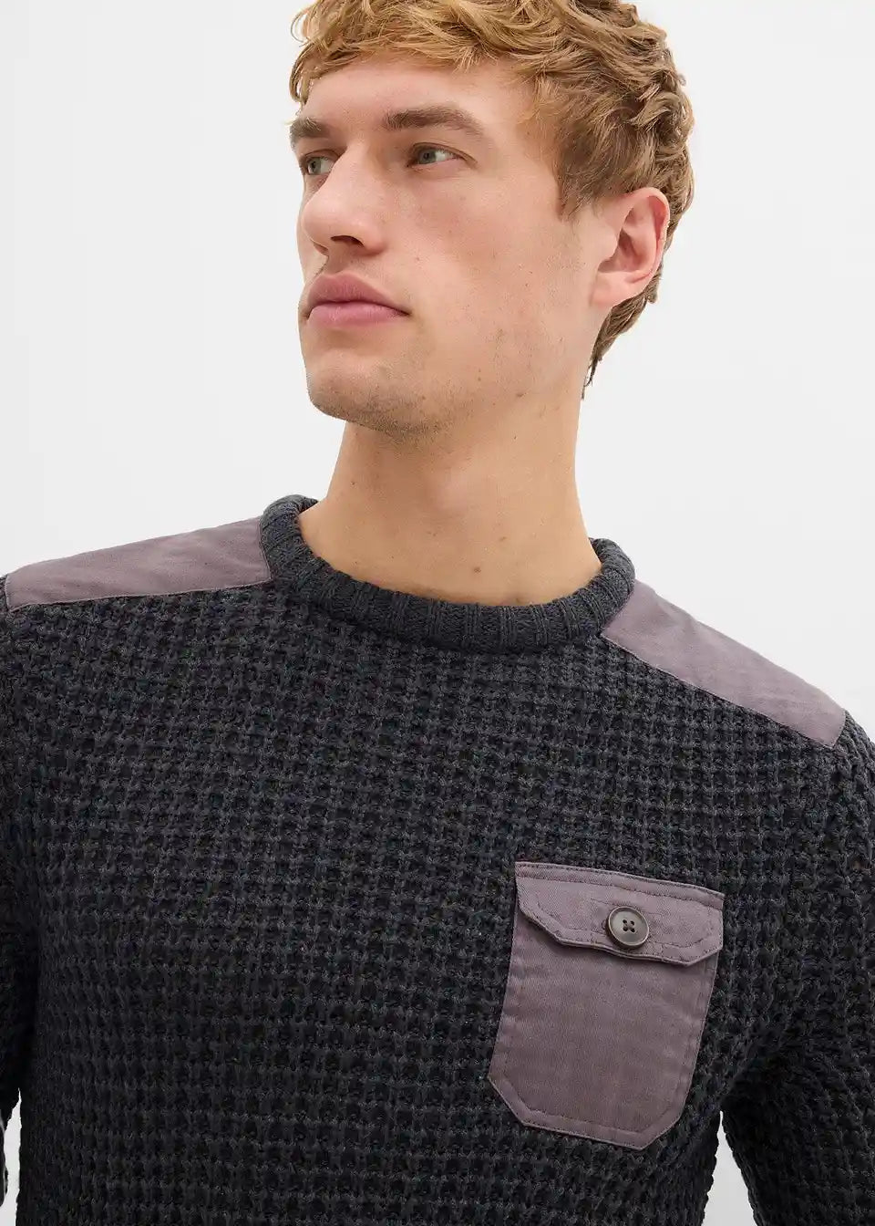 Moderen pulover z okroglim izrezom in naprsnim žepom