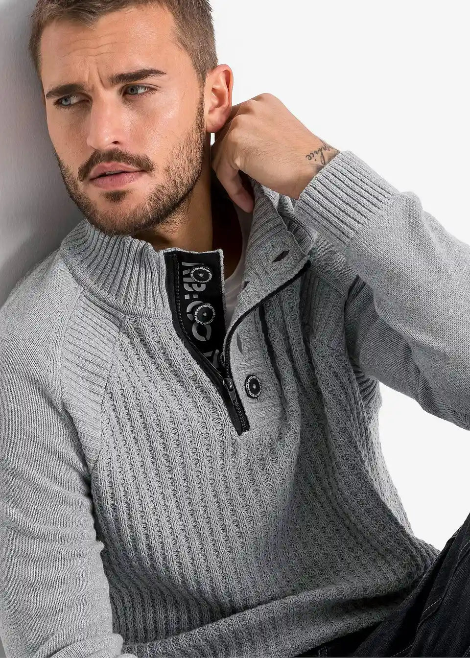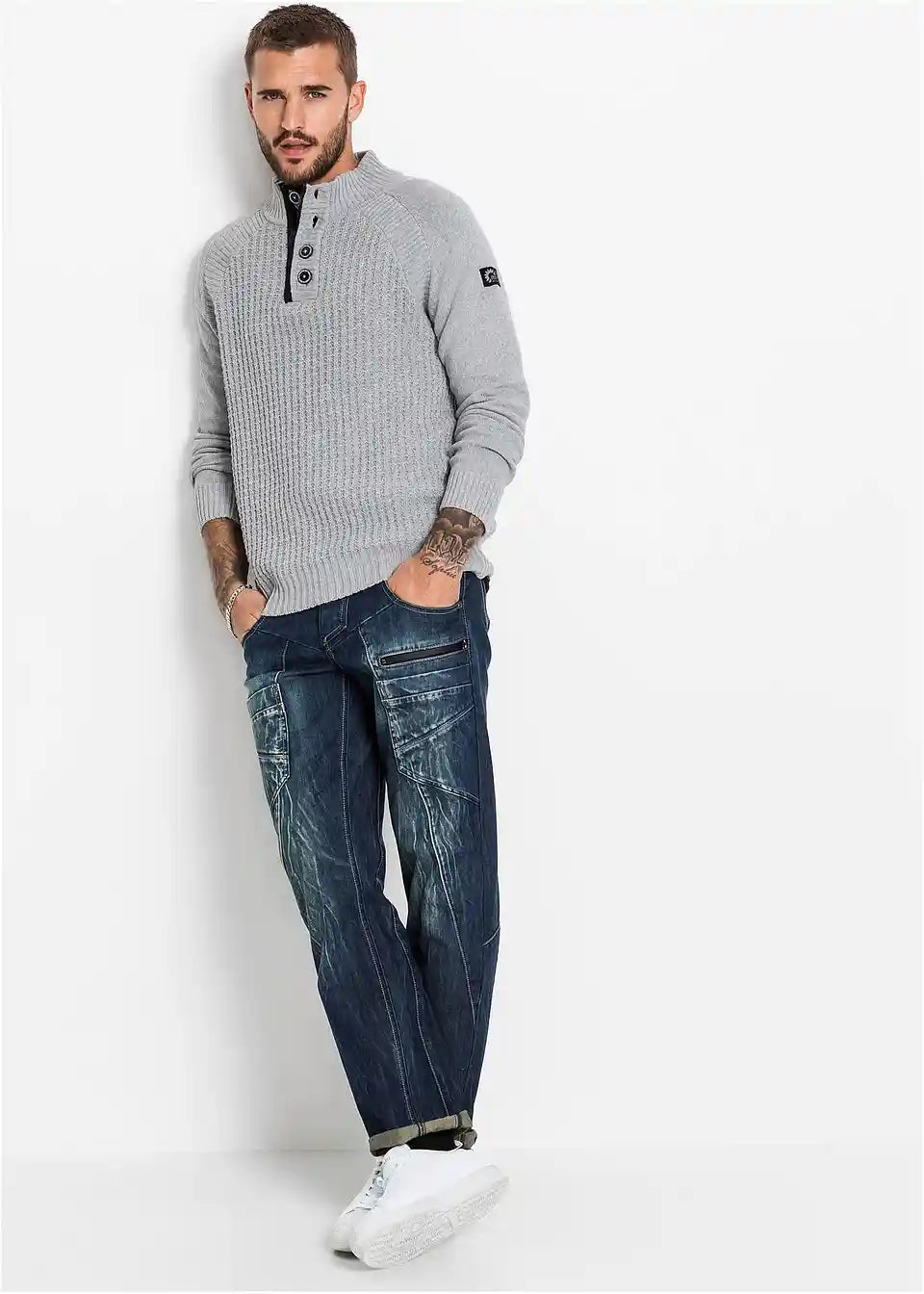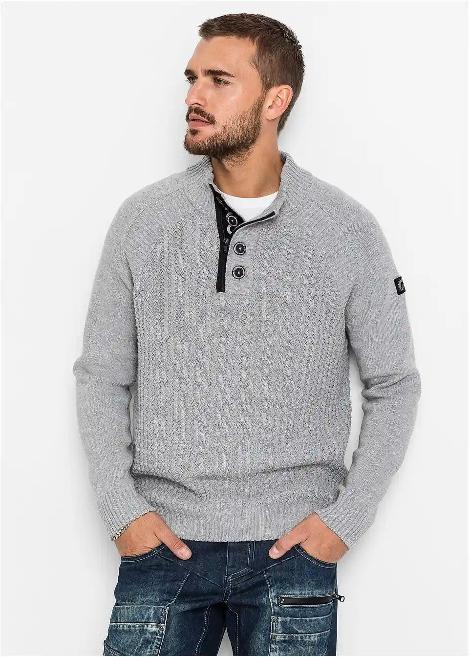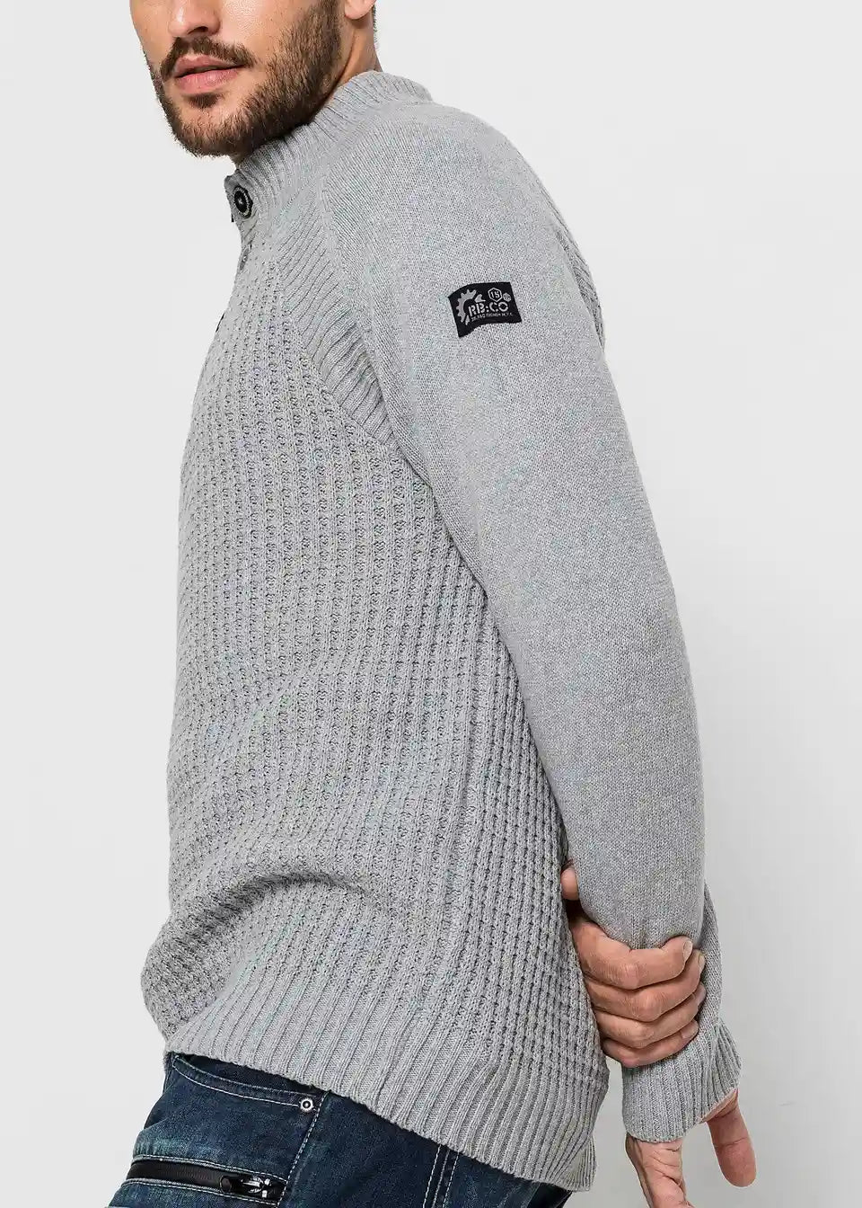 Pulover s pokončnim ovratnikom z recikliranim bombažem
