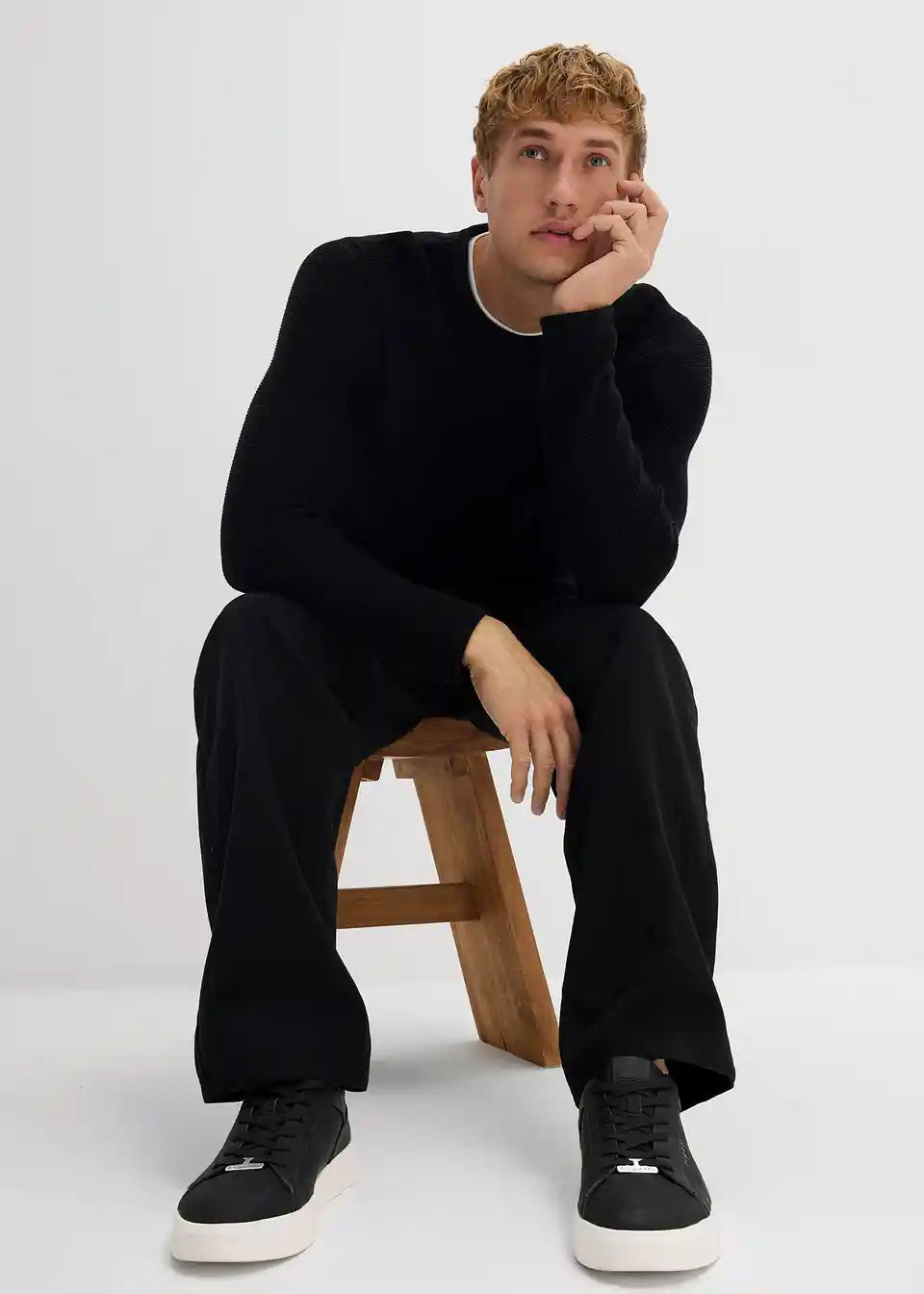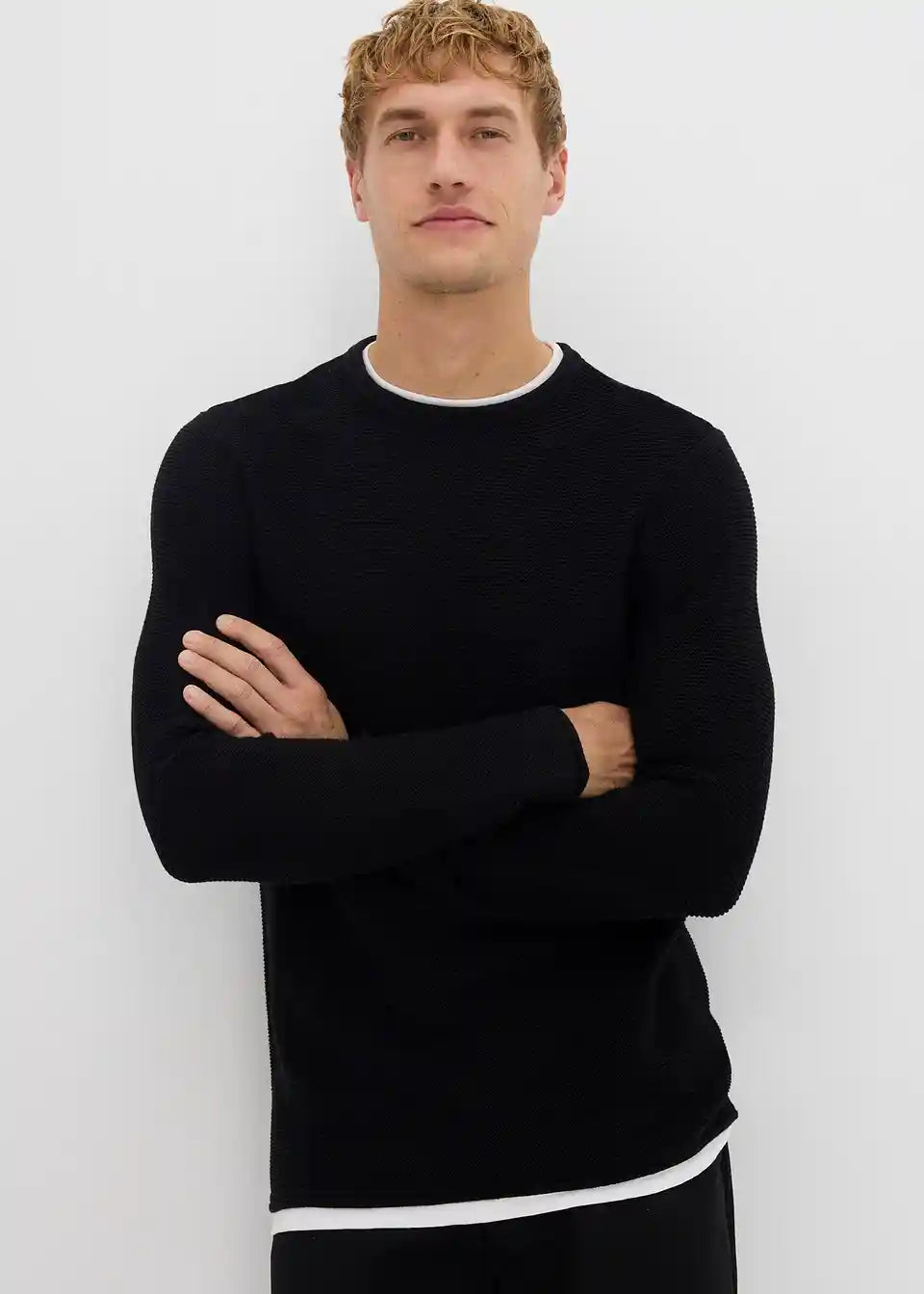Strukturiran pulover v dvoplastnem videzu iz bombažne mešanice
