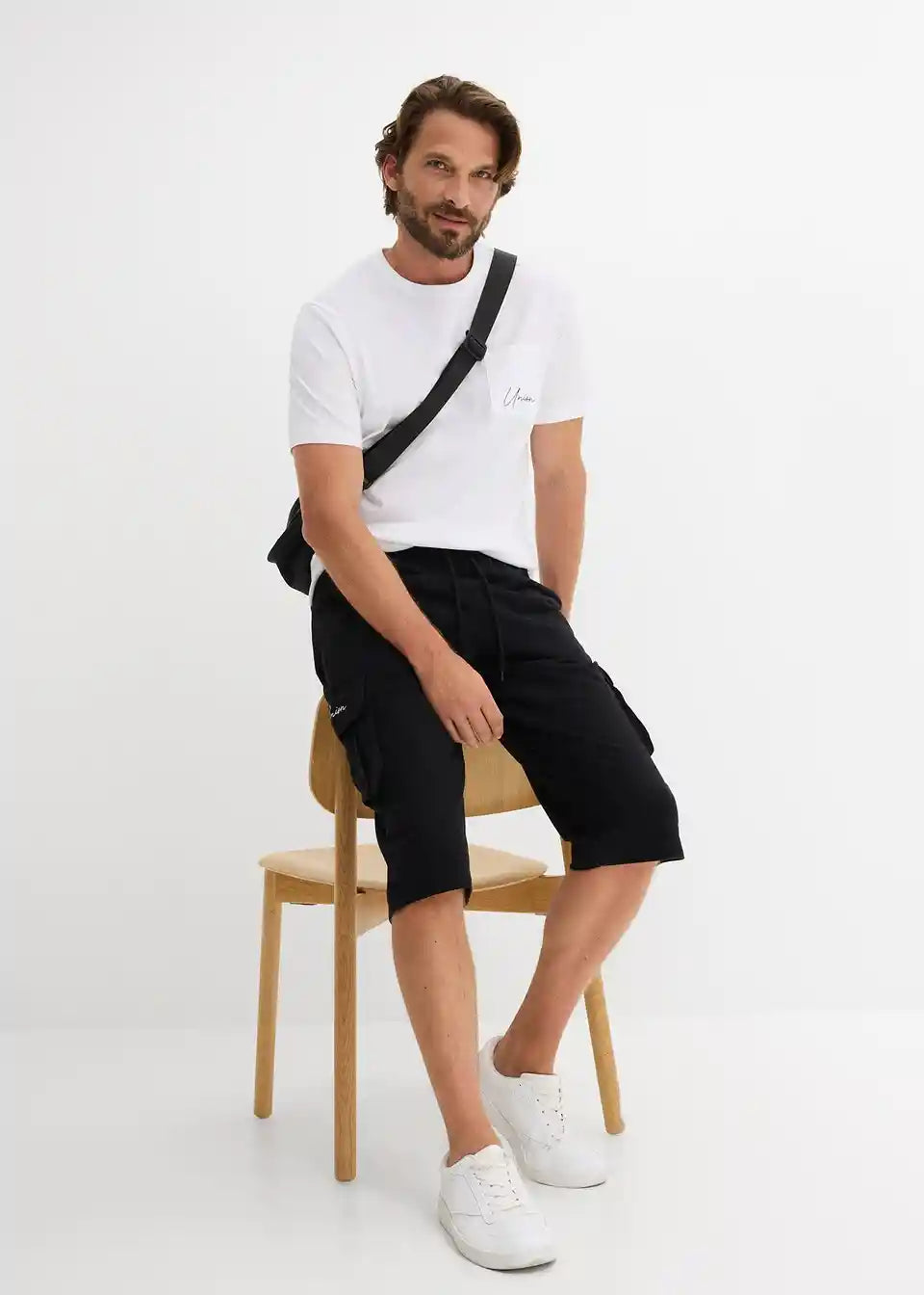 Udobna T-Shirt majica v klasičnem kroju z naprsnim žepom in udobne jogging hlače z elastičnim pasom in izjemnimi cargo žepi