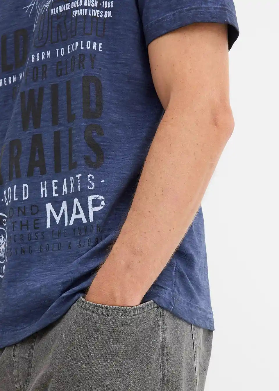 Udobna T-Shirt majica v klasičnem kroju v edinstvenem oljnato spranem stilu učinkom in izjemnim potiskom v dveh niansah spredaj