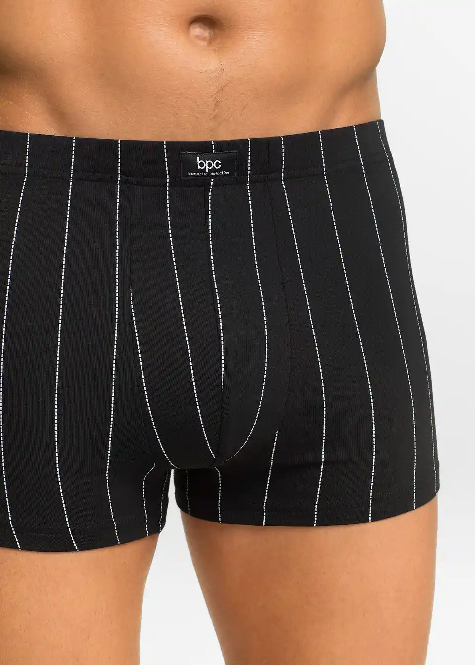 Te moške boksarice znamke bpc združujejo udobje z privlačnim videzom. Na voljo so v praktičnem trojnem paketu. Raztegljiv pas in prilagodljivi robovi nog zagotavljajo optimalno prileganje in prijetno nošenje. Zahvaljujoč elastičnemu materialu boksarice omogočajo dovolj svobode gibanja. Na sprednji strani pasu je nameščen logotipni našitek.