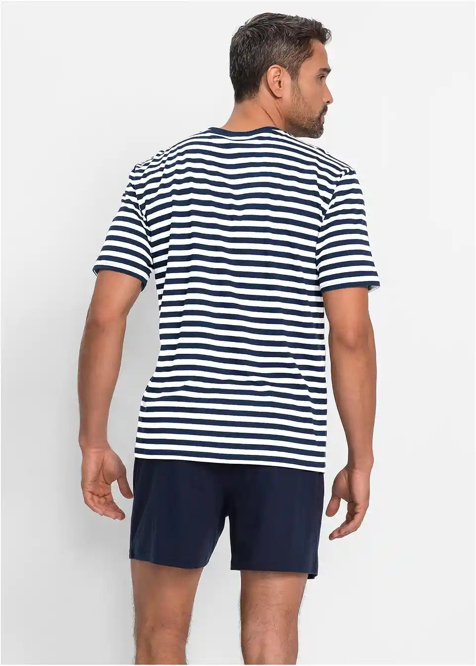 Ta dvodelni komplet vsebuje udoben moški pižama komplet z blagovne znamke bpc. Komplet sestavljajo kratke hlače in ustrezna majica s kratkimi rokavi. Majica s kratkimi rokavi in V-izrezom ima priložen žep na prsih v kontrastni barvi. Elastični pas in širok kroj naredita model še posebej prijeten za nošenje.