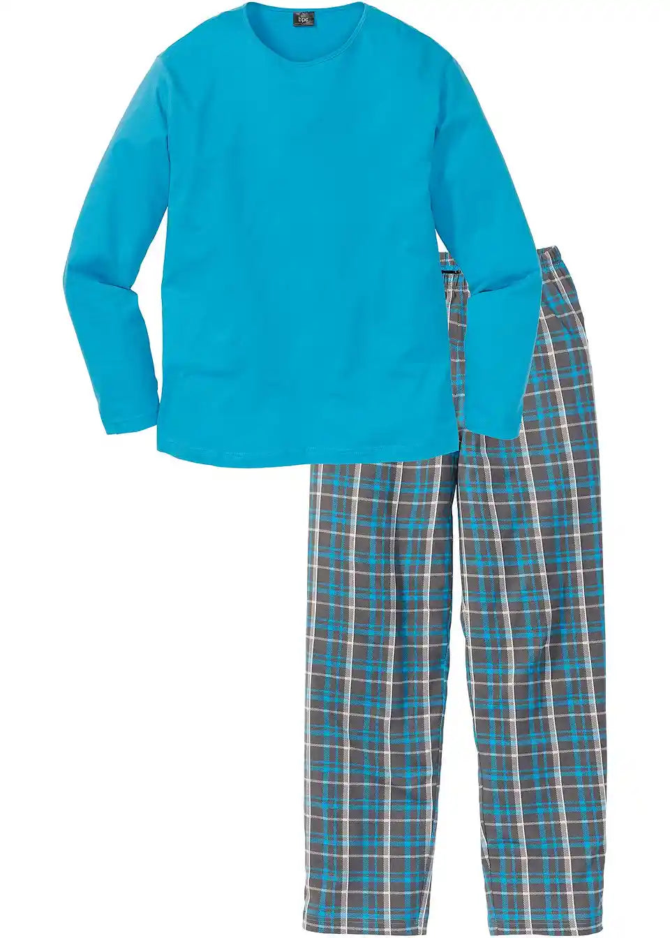 Zelo udobna pižama znamke bpc se pokaže že na prvi pogled. Dolge hlače in rokavi naredijo model odlično izbiro za hladnejše dni. Hlače z elastiko in vzorcem karo omogočajo nemoteno gibanje zahvaljujoč sproščenemu kroju. Zgornji del z okroglim izrezom se ohlapno prilega telesu. Barvno sta oba kosa usklajena.