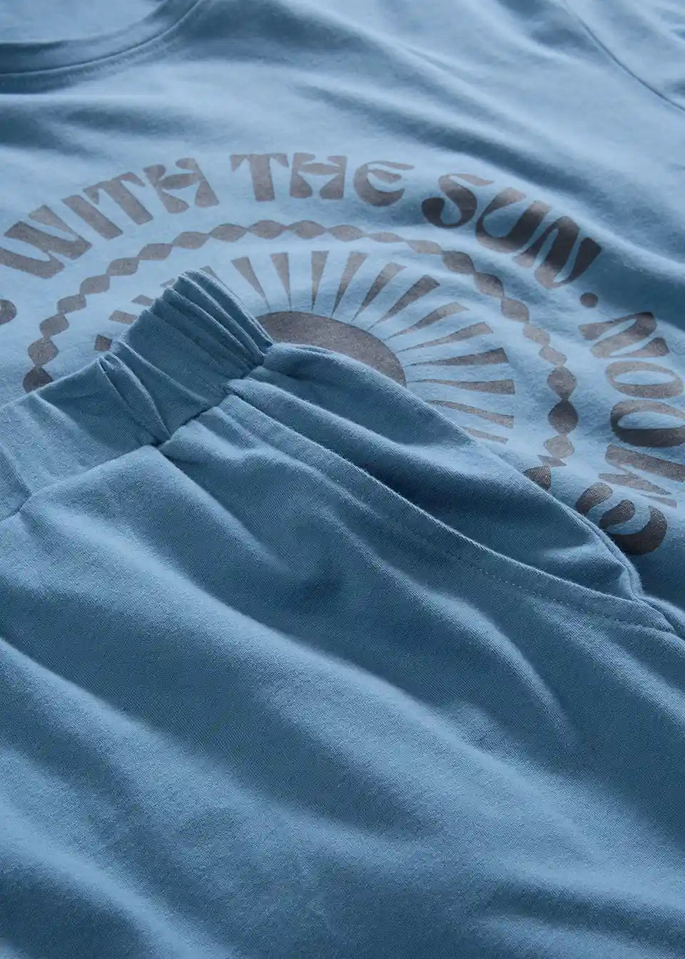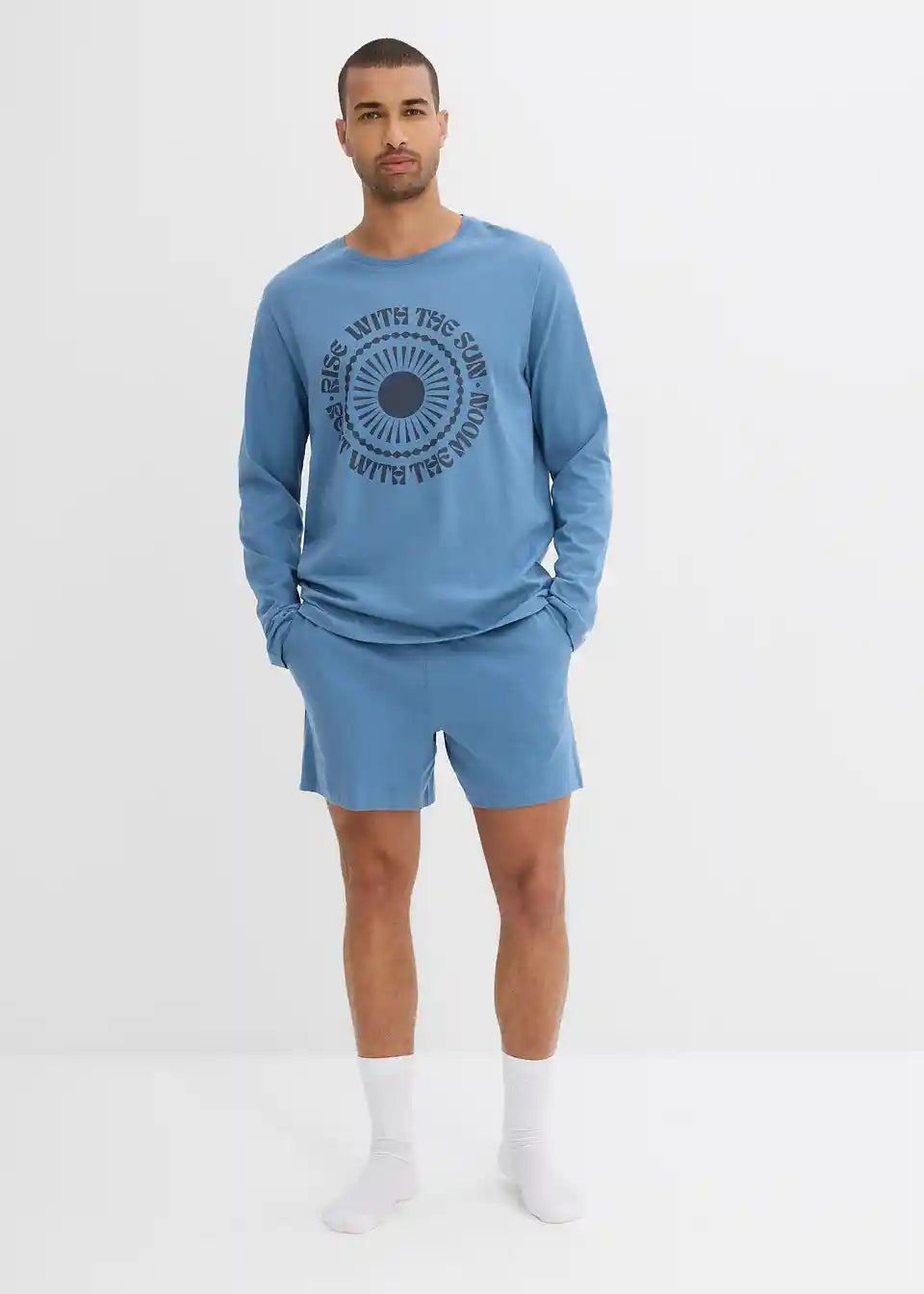 Udobna kratka pižama z majico z dolgimi rokavi in kratkimi hlačami.