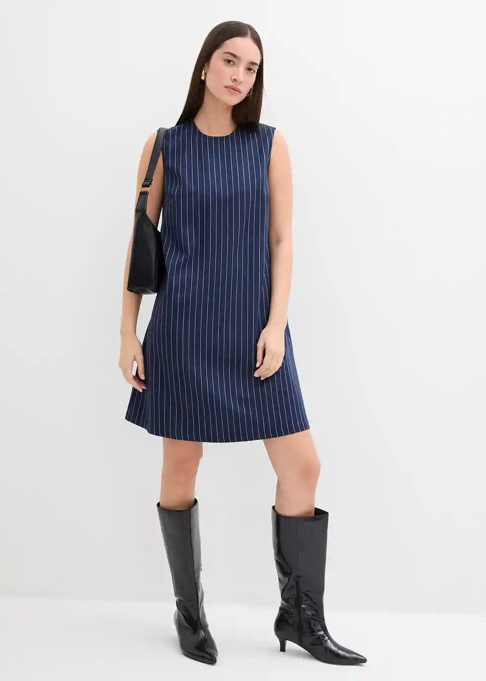 Mini obleka s tankimi črtami iz viskozne mešanice