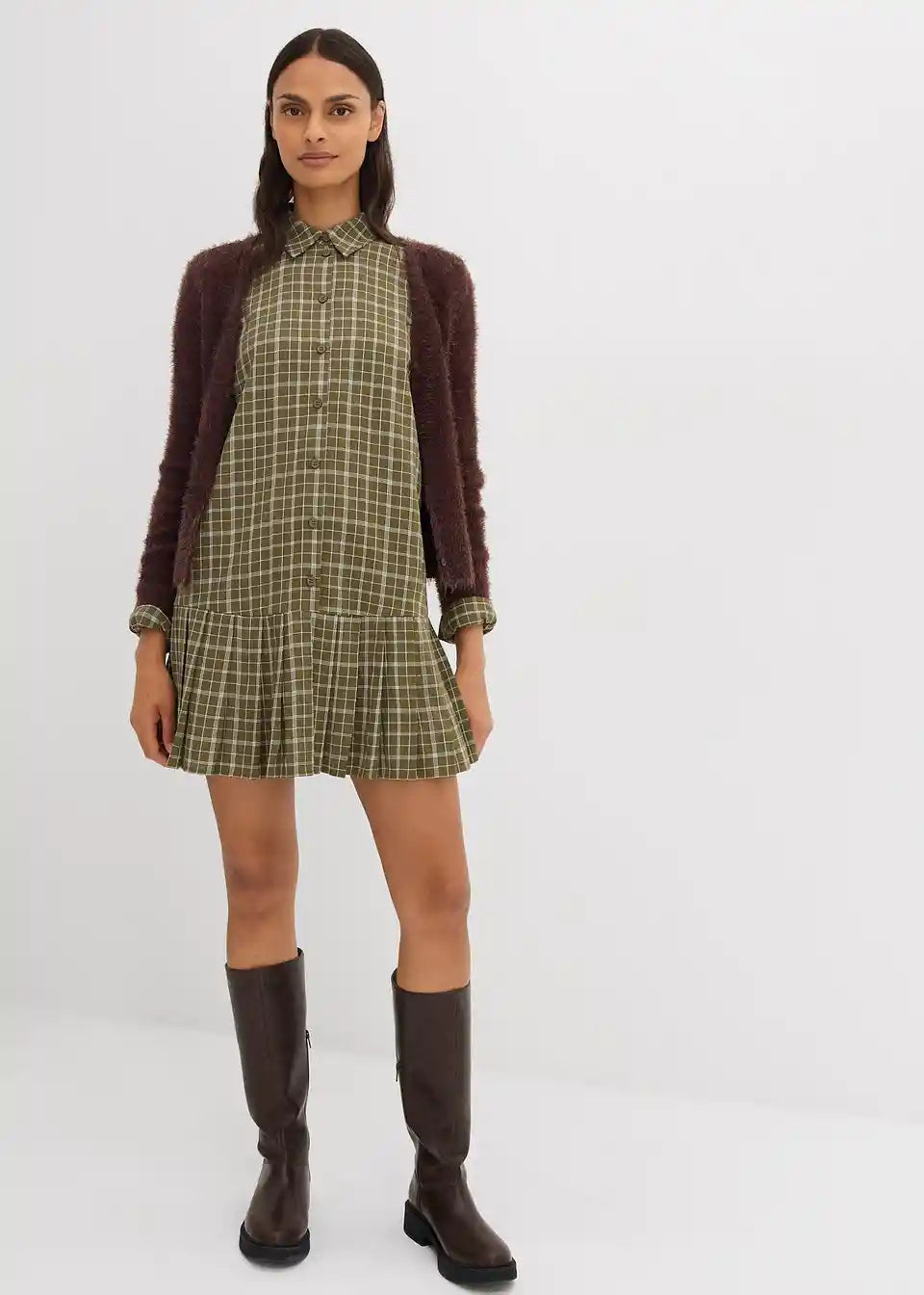 Srajčna obleka s karirastim vzorcem