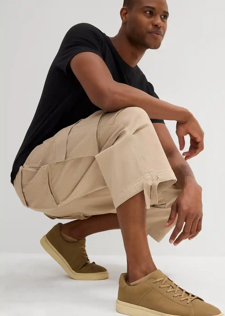 Udobne stretch 3/4-hlače s cargo žepi v zelo širokem kroju