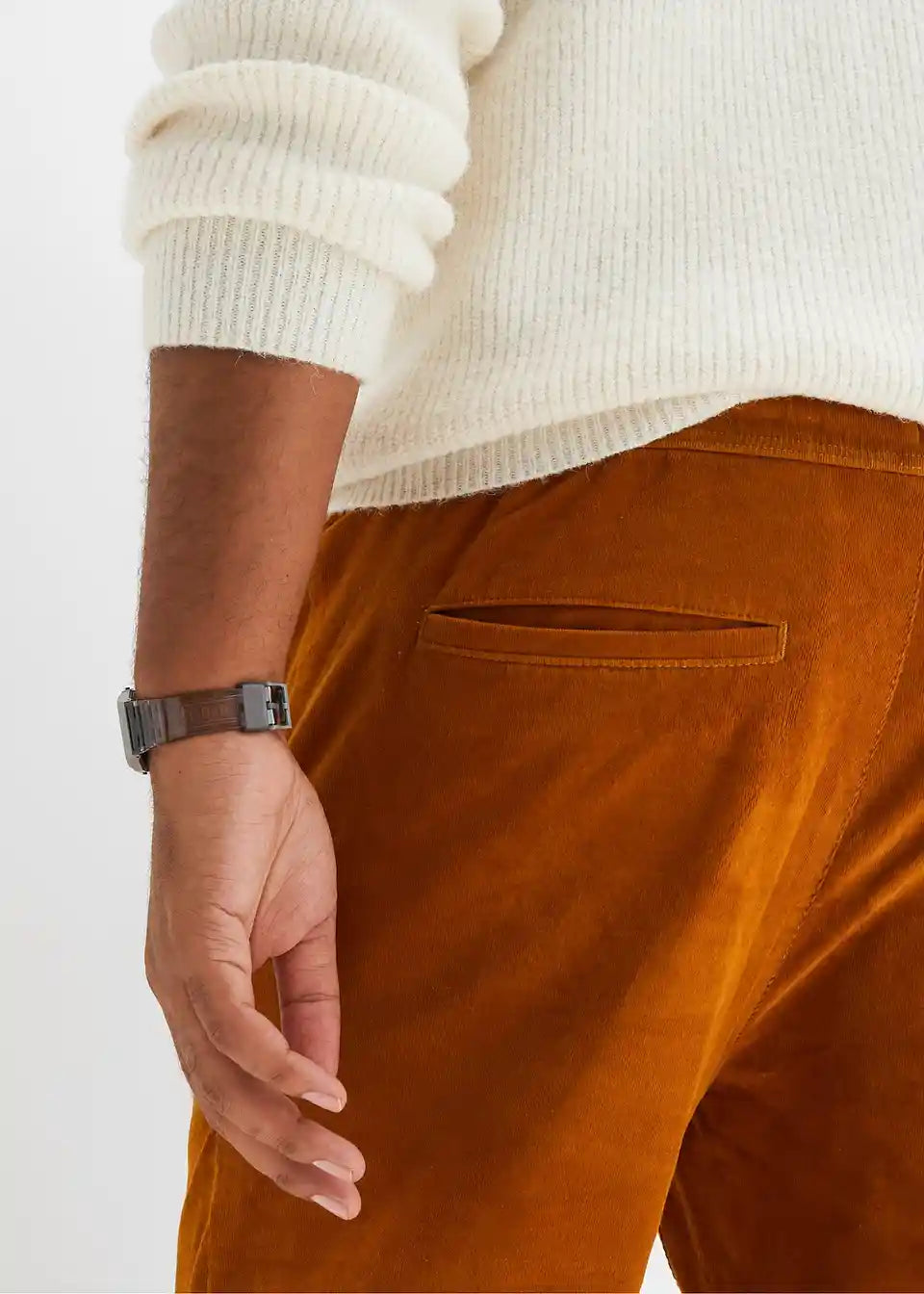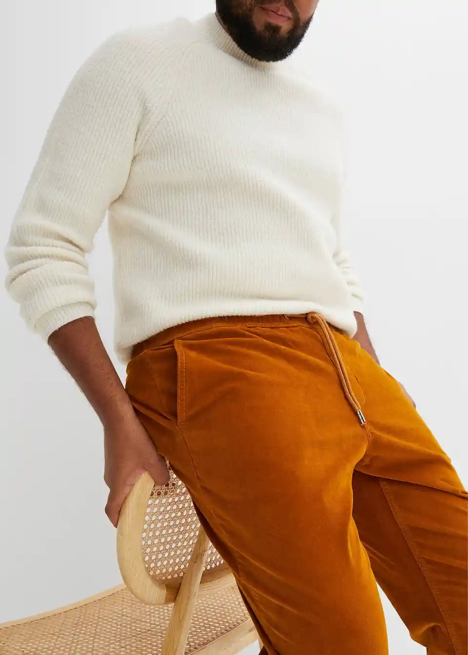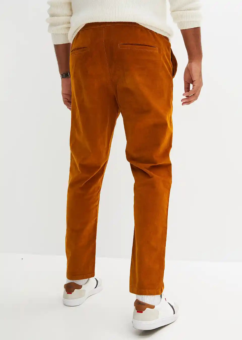 Klasične hlače iz žameta brez zapenjanja v rahlo krajši dolžini v ravnem kroju