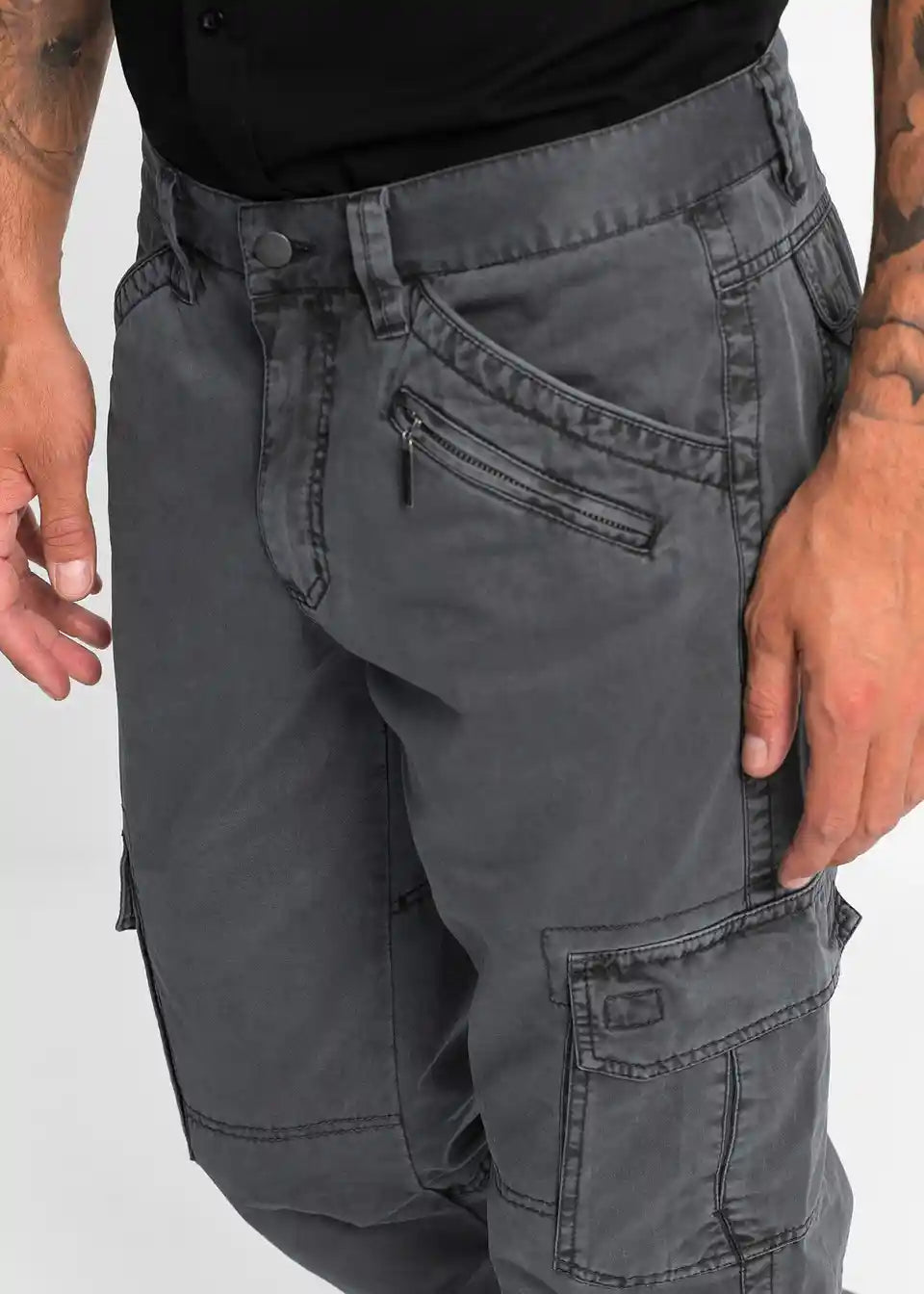 Udobne hlače s cargo žepi iz robustnega čistega iz bombaža v ravnem kroju