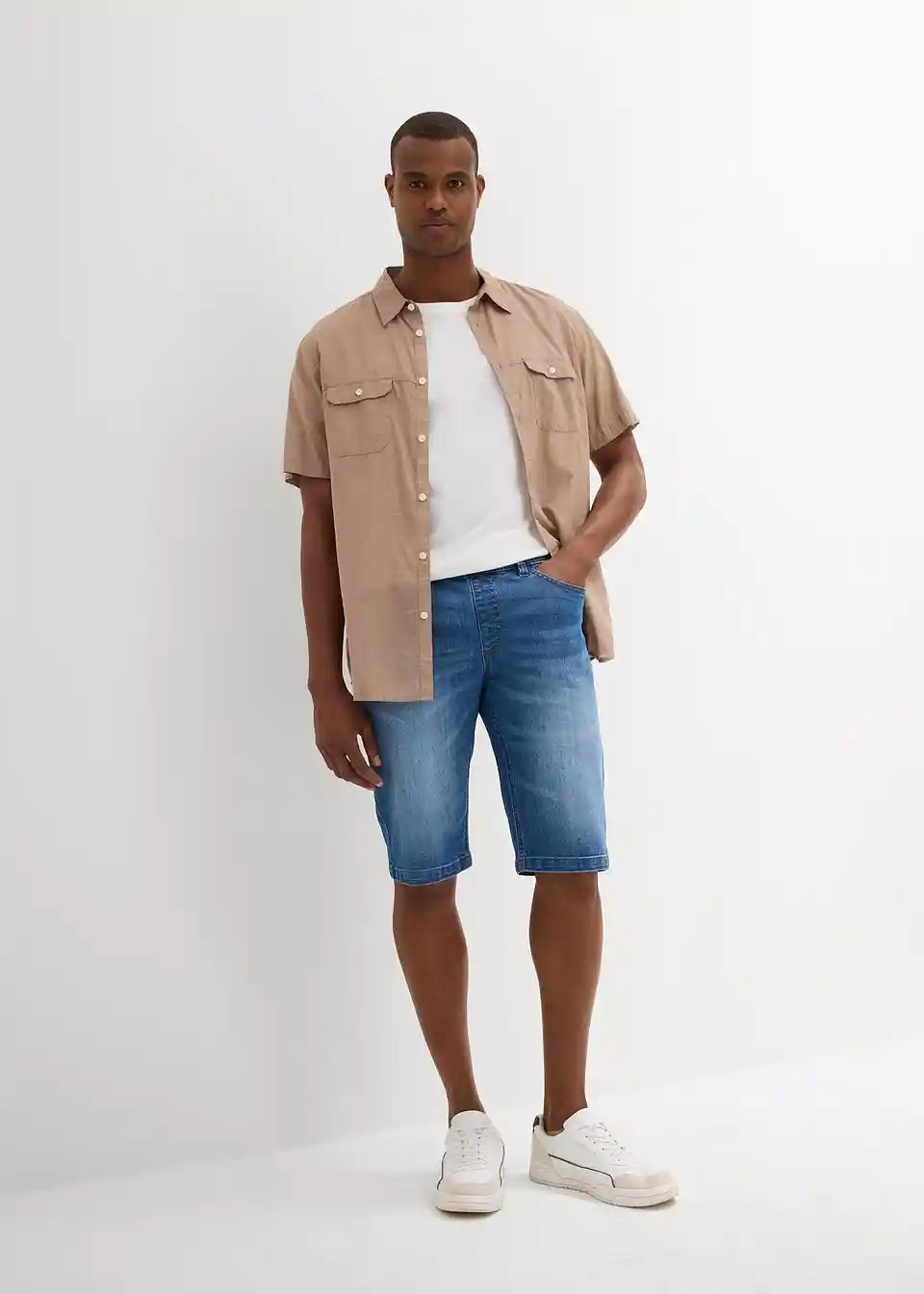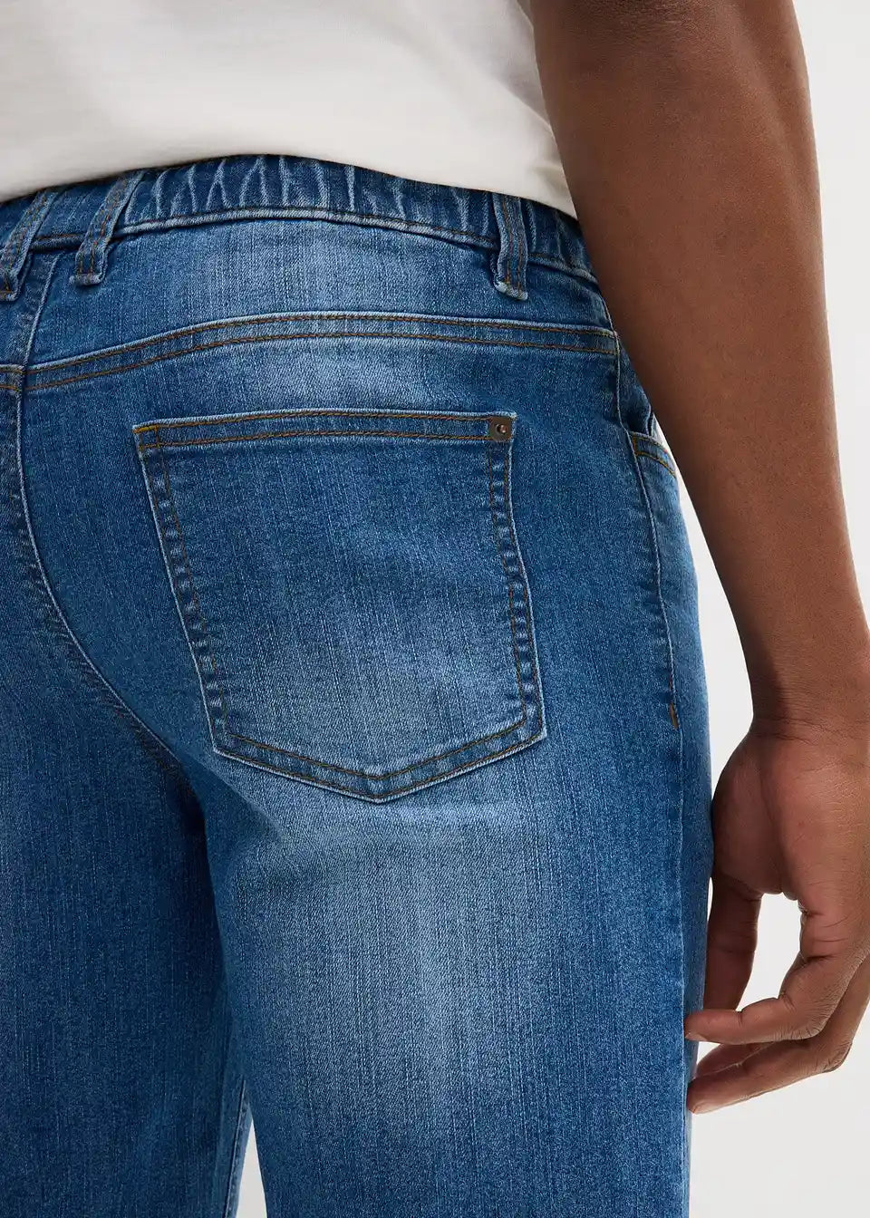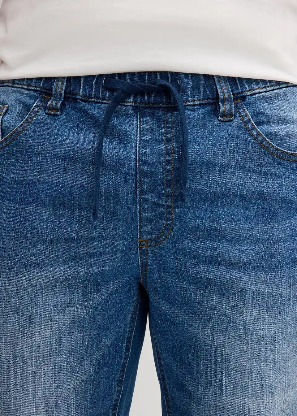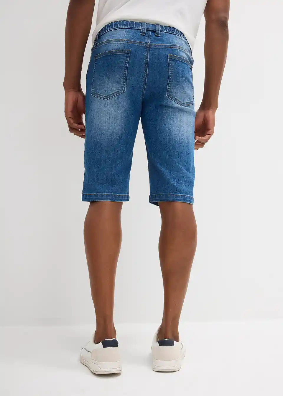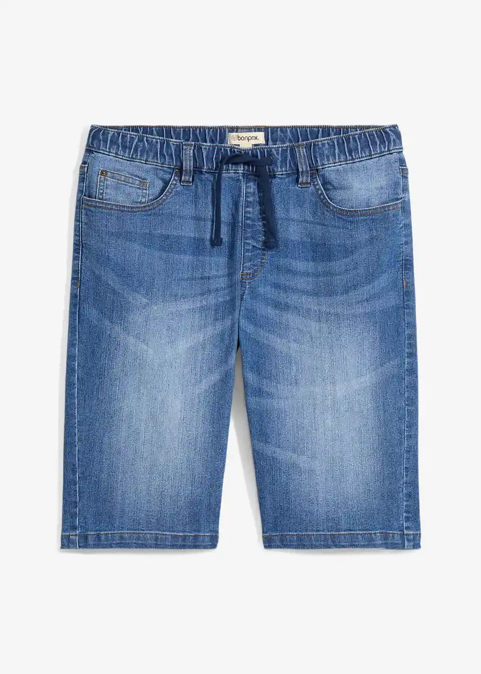Udobne bermuda kavbojke brez zapenjanja z vpeljano elastiko okrog in okrog z rahlo spranimi predeli