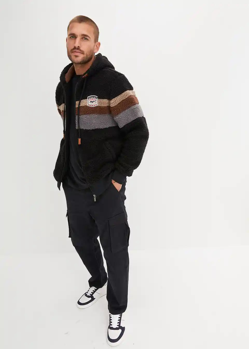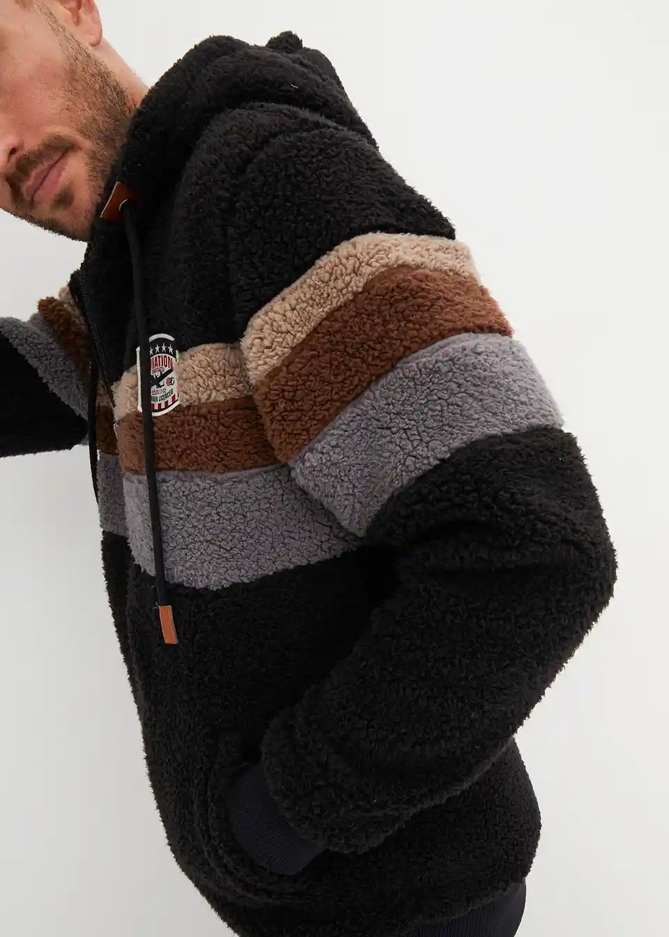 Jakna iz umetnega ovčjega krzna s kapuco