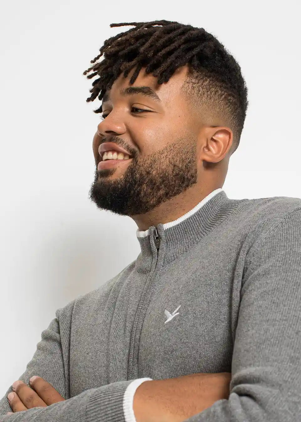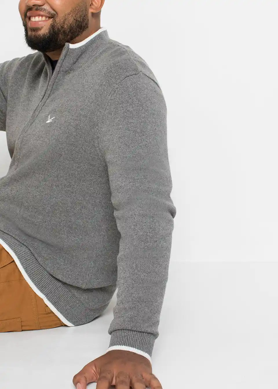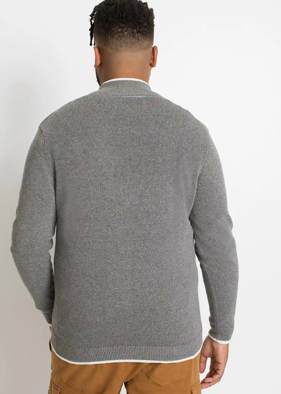Fino pletena jopa s pokončnim ovratnikom in recikliranim bombažem
