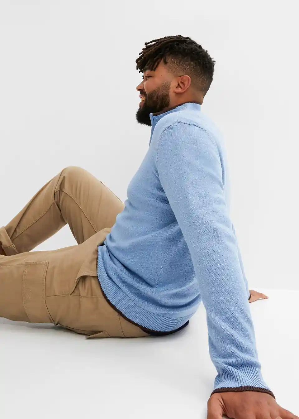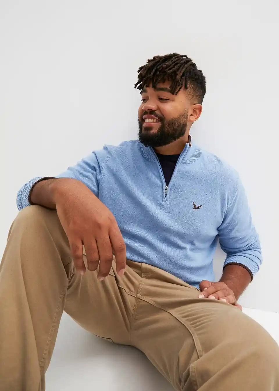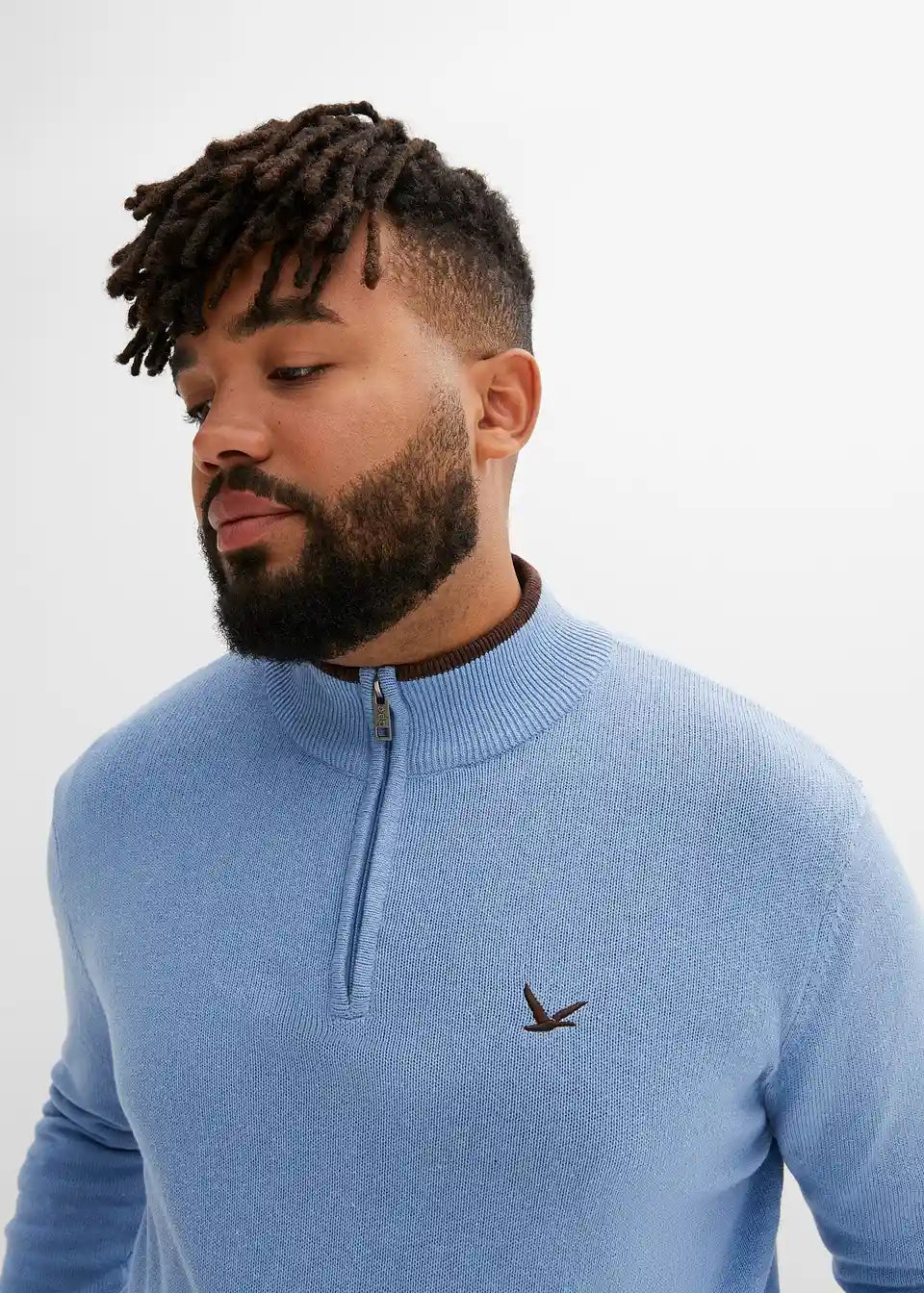 Zapovedan pulover s trojanskim ovratnikom z majhno vezenino na prsih. Strojno pranje