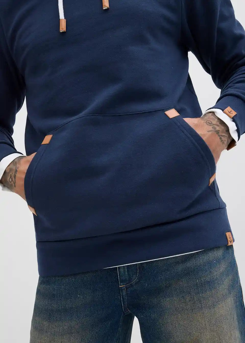 Moderna majica iz trikoja s kapuco in žepom spredaj iz znotraj mehko kosmatenega materiala