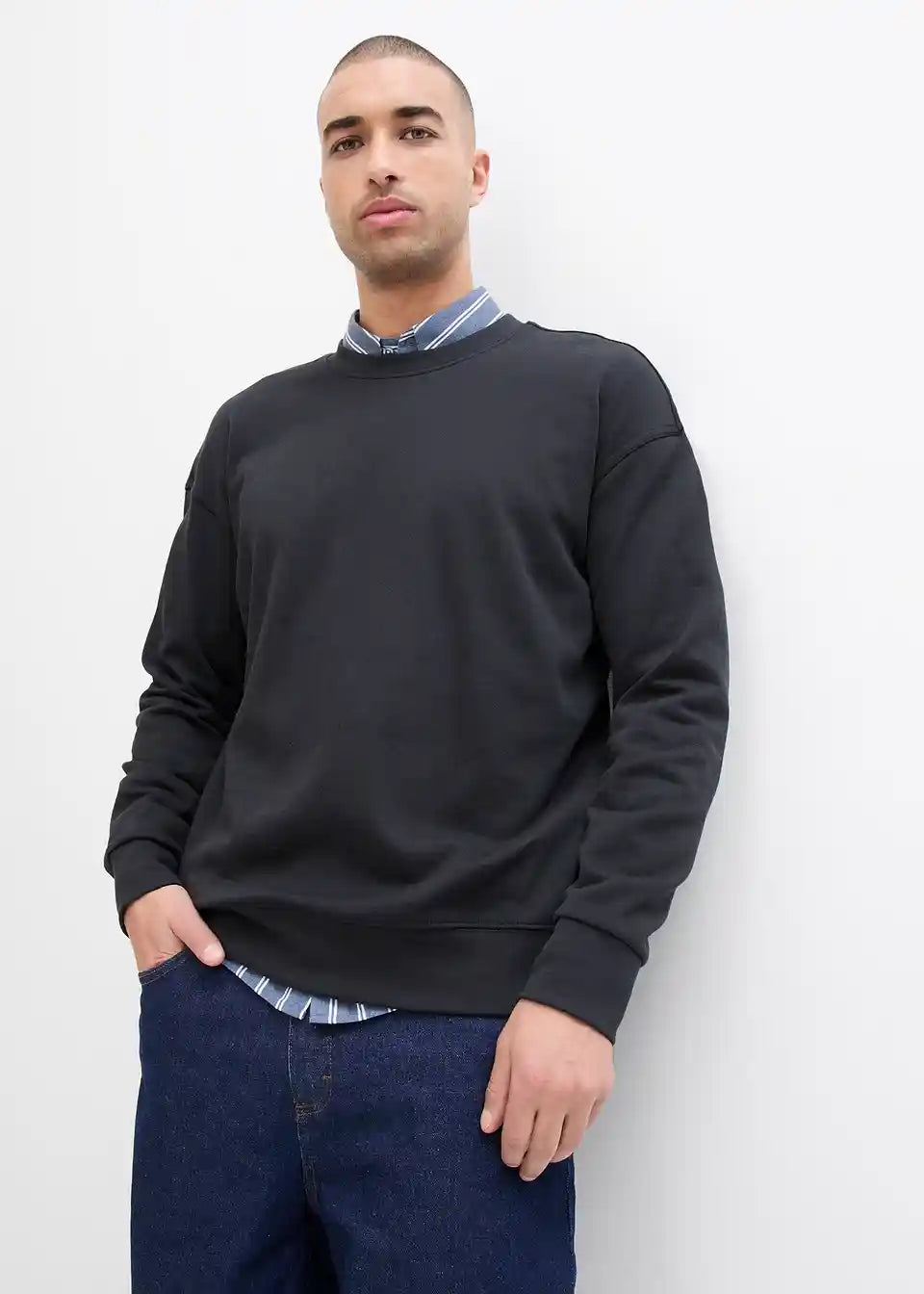 Moderna klasična majica iz trikoja z v rokave podaljšanimi ramami iz čistega ekološkega bombaža, ki je znotraj mehko kosmaten