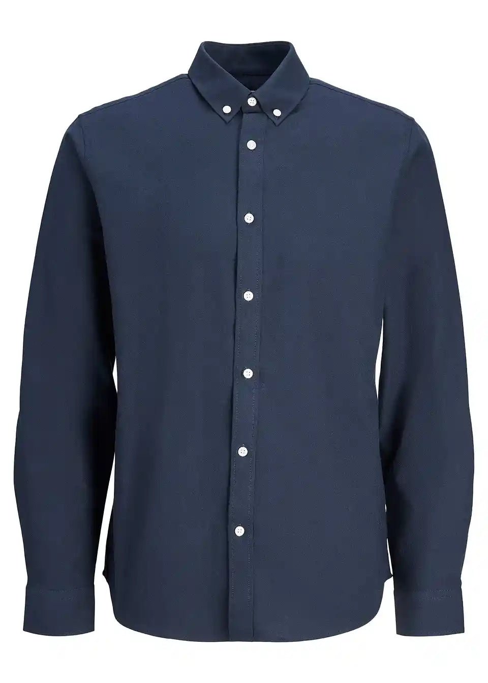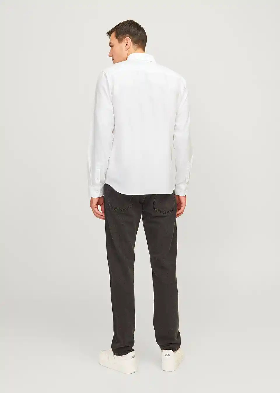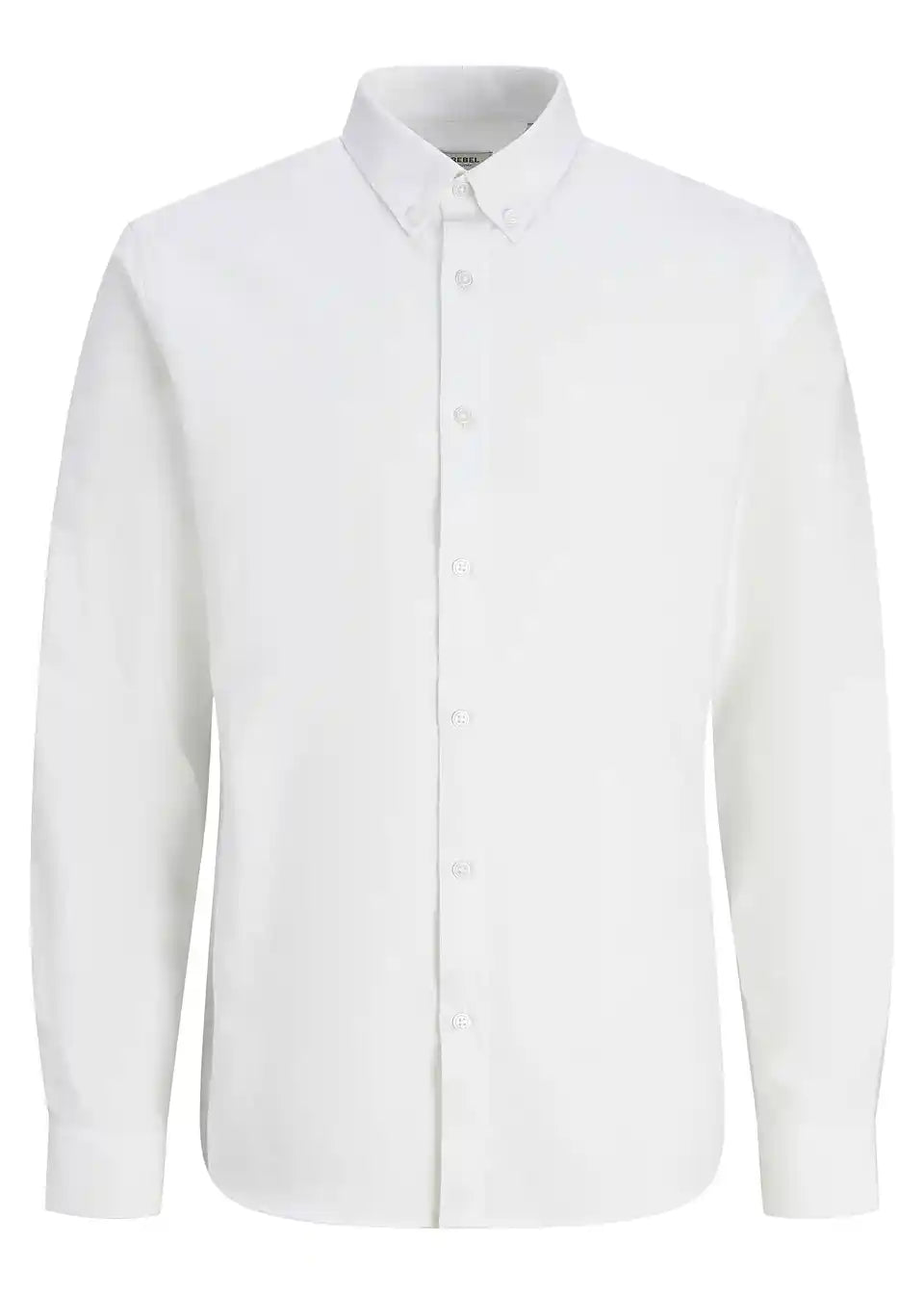 JJ REBEL - Moderna srajca z dolgimi rokavi v klasičnem kroju s klasičnim z ovratnikom z gumbi in izjemno zaokroženim spodnjim robom