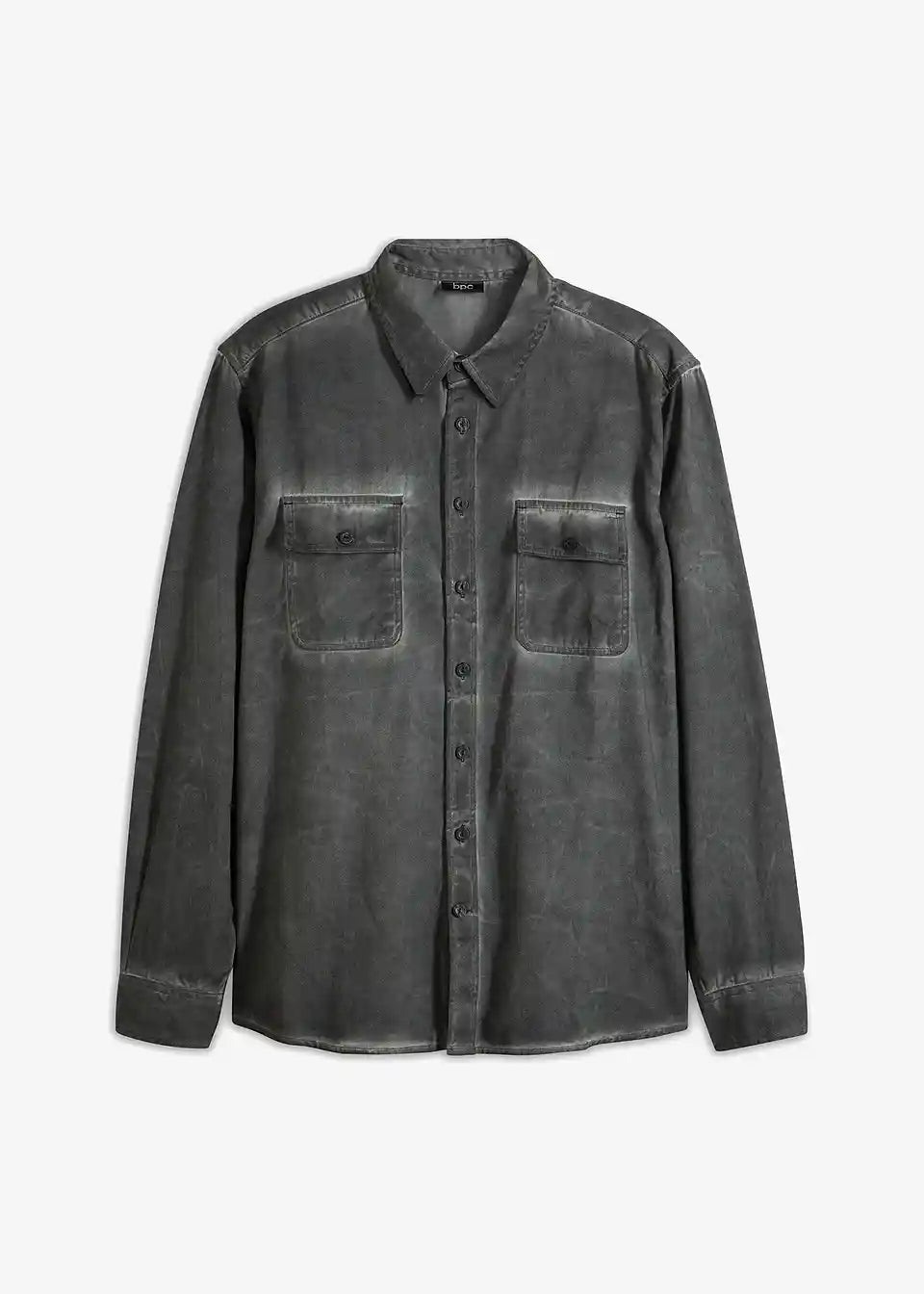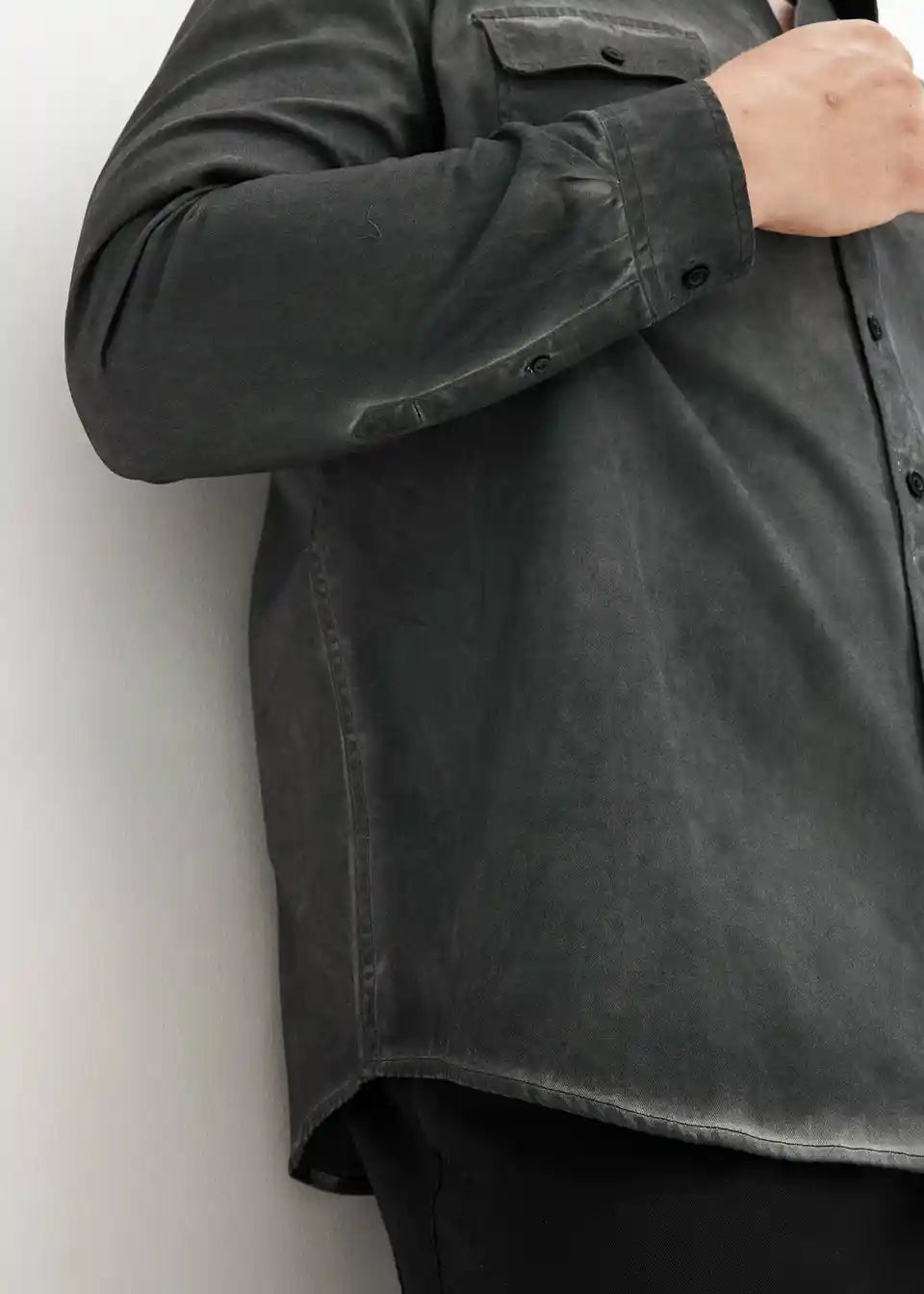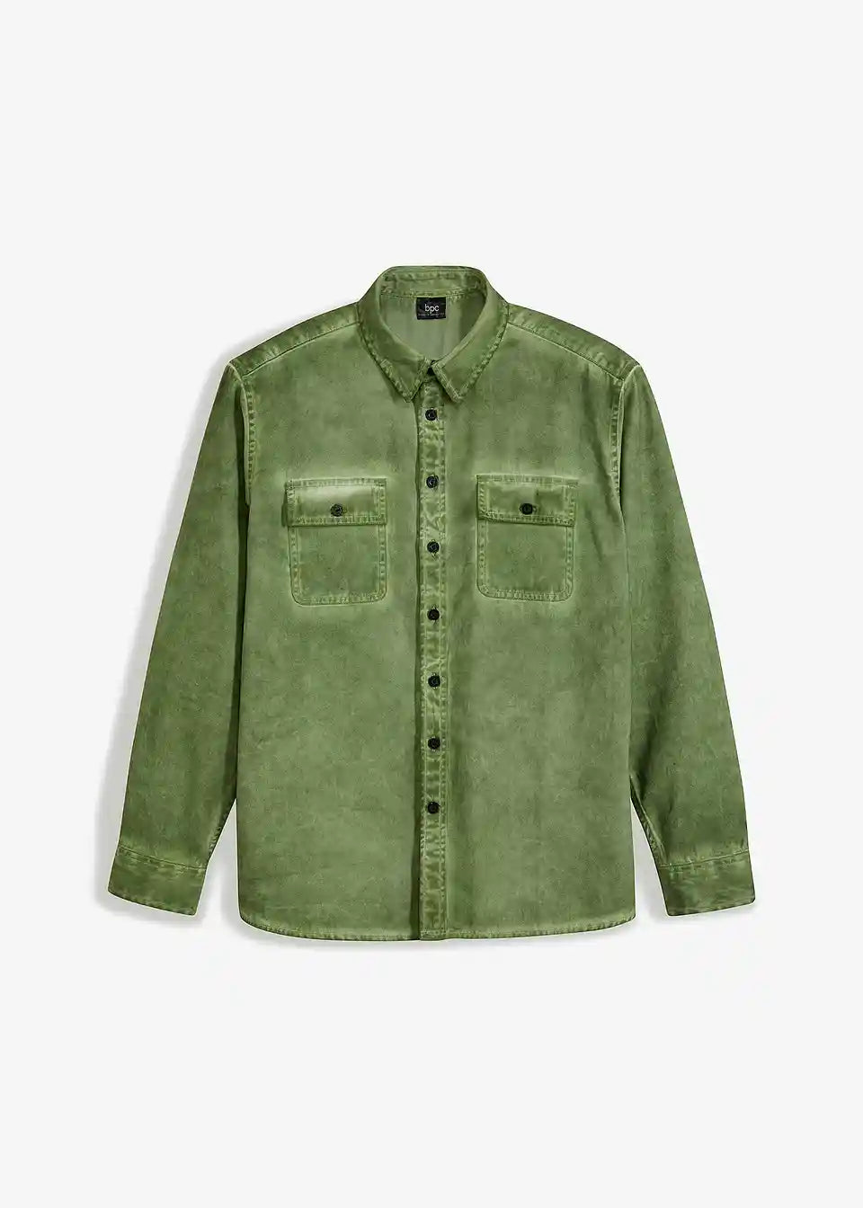 Lepa srajca z dolgimi rokavi, okroglim robom in prsnim žepom, vsak kos je unikat.