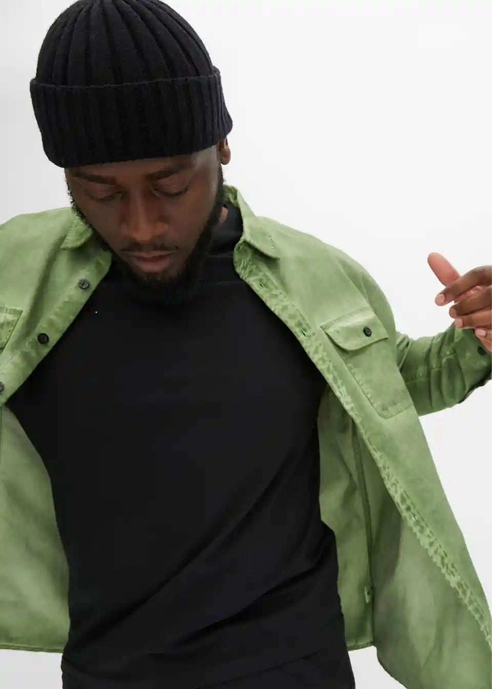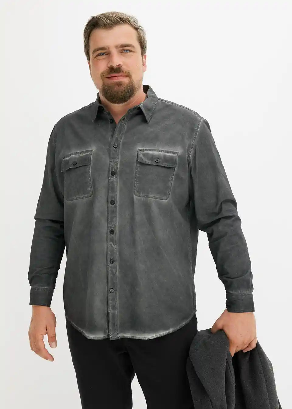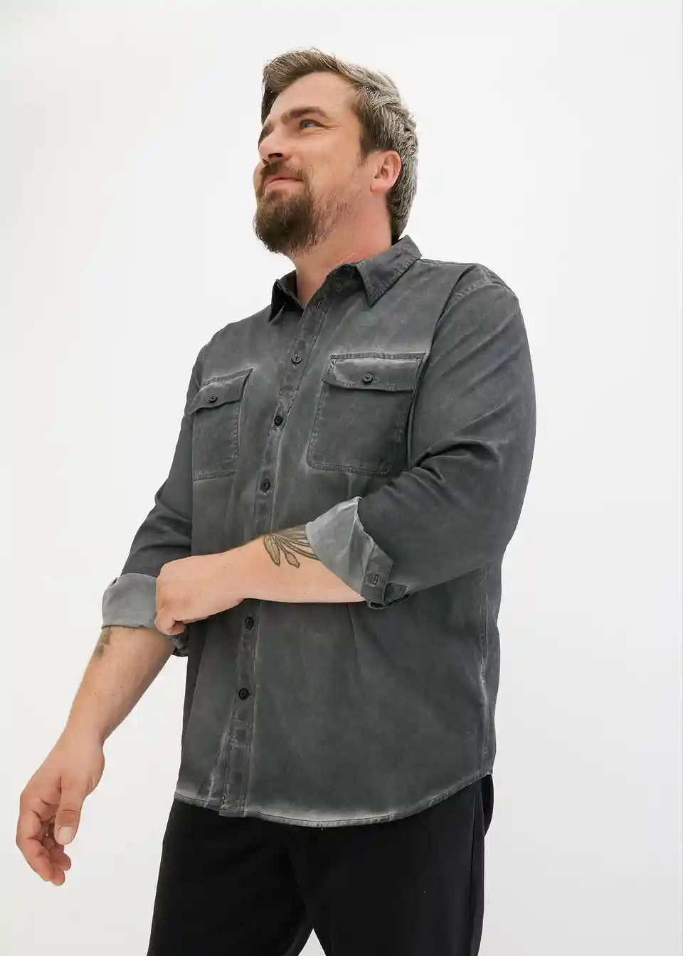 Lepa srajca z dolgimi rokavi, okroglim robom in prsnim žepom, vsak kos je unikat.
