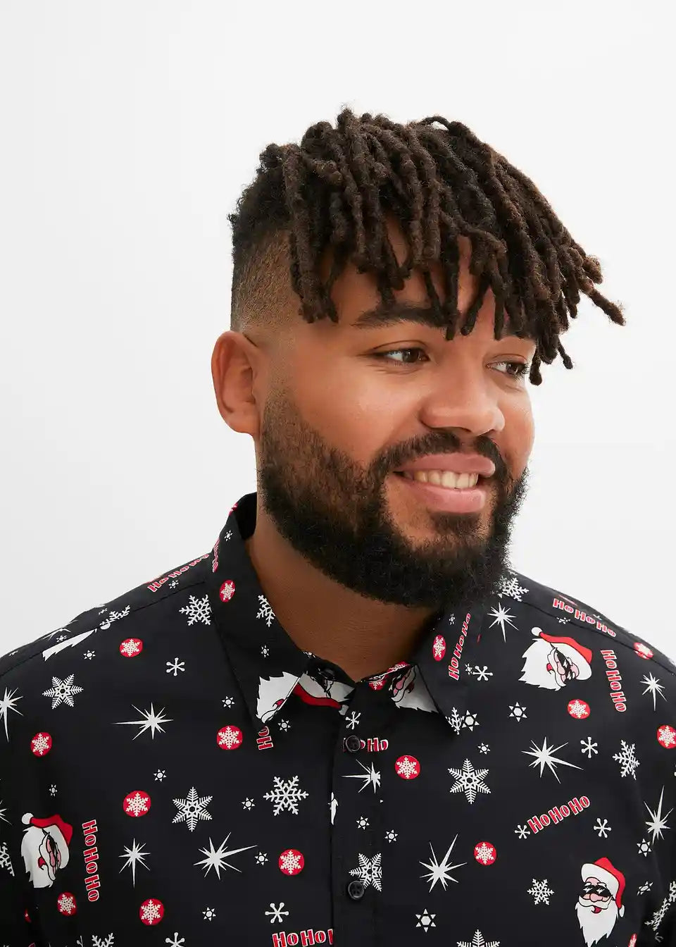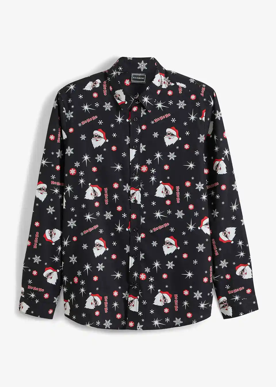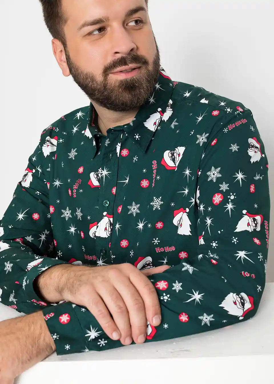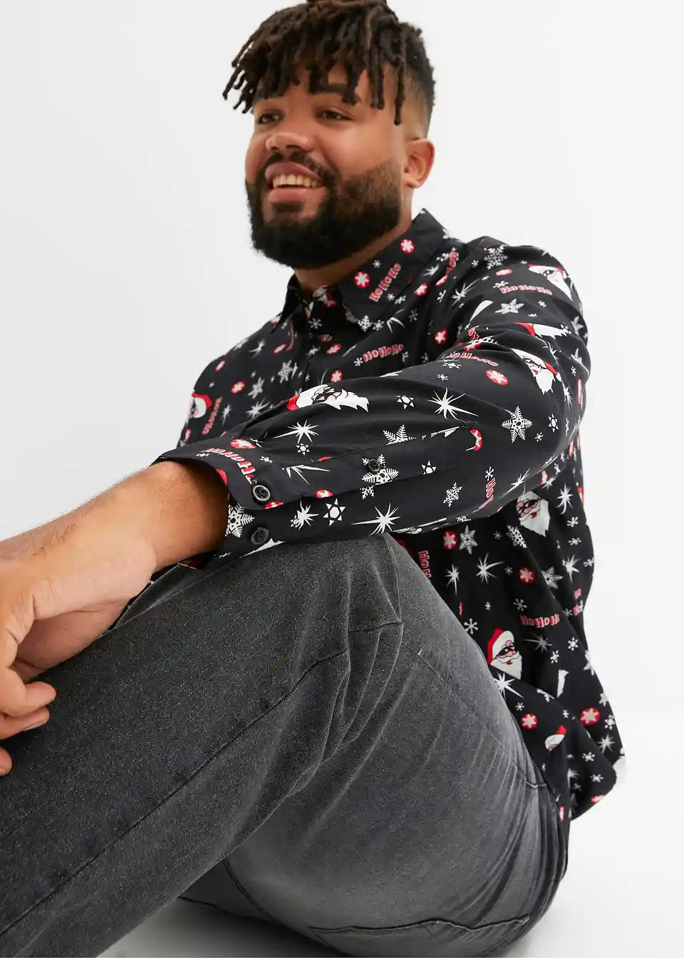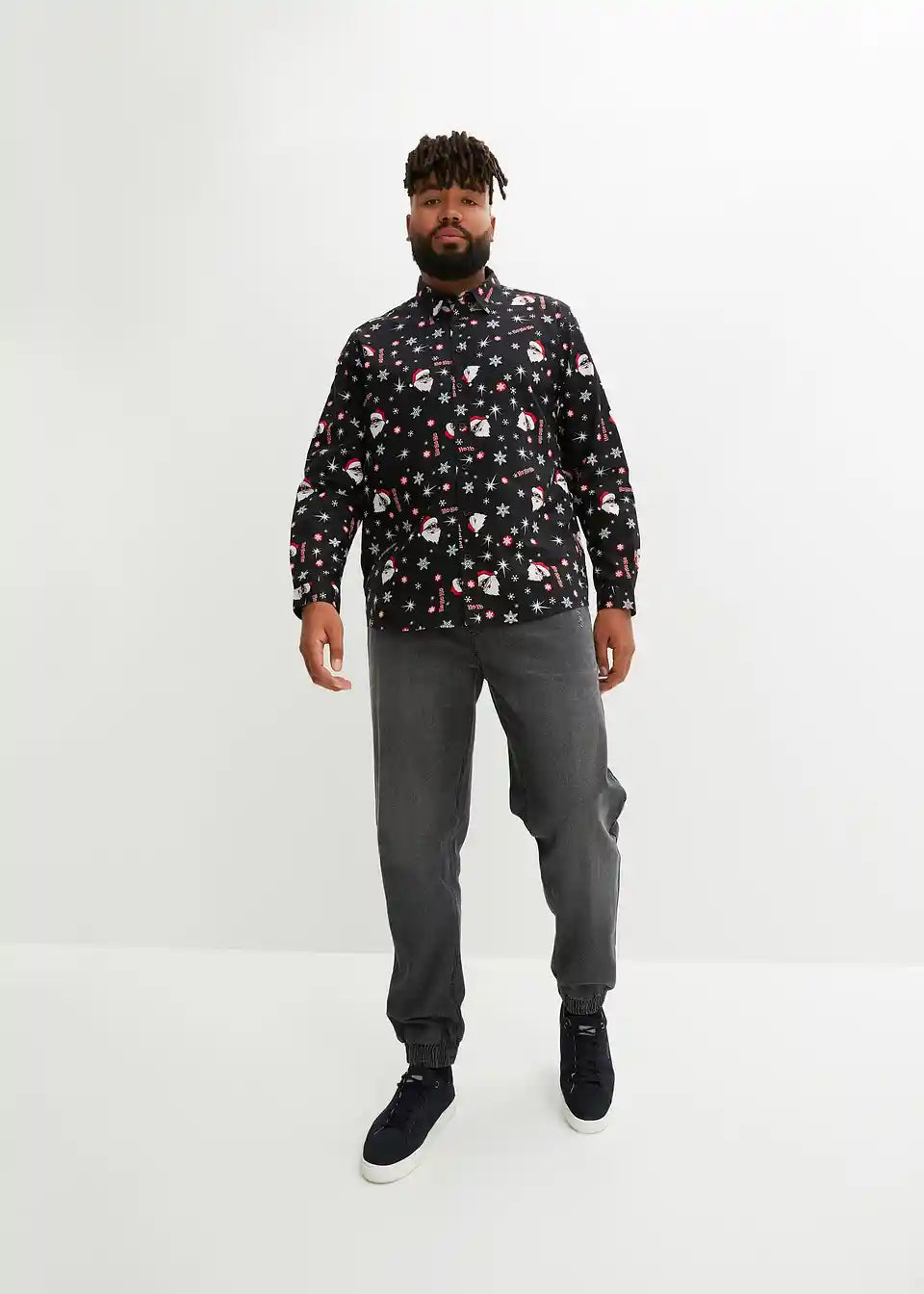 Srajca z dolgimi rokavi z božičnim potiskom v ozkem kroju