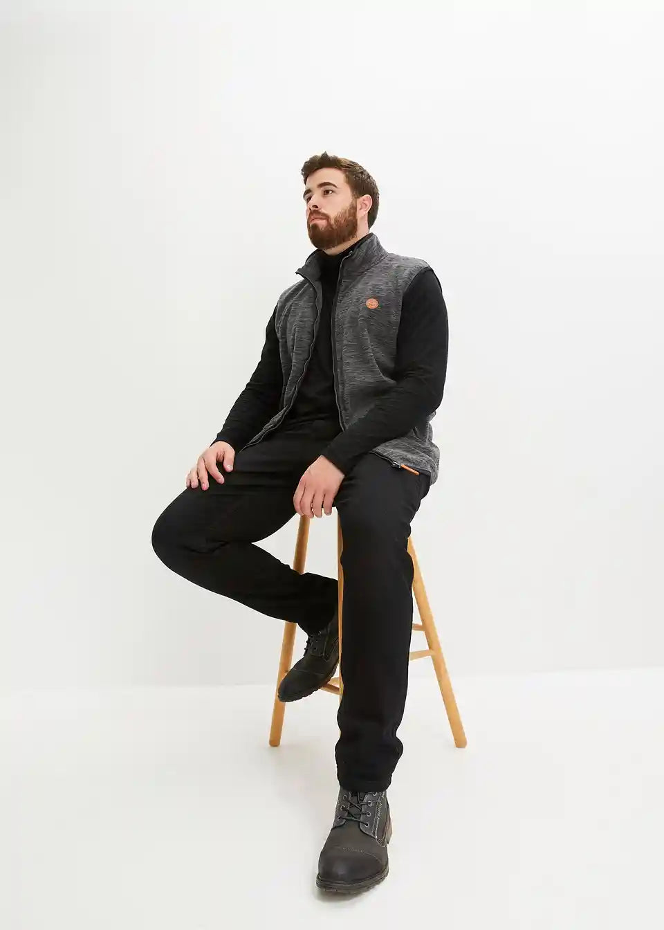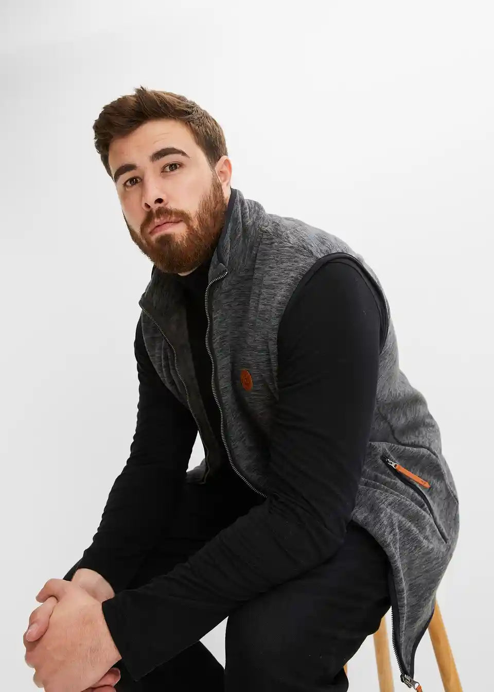 Fleece Telovnik z visokim ovratnikom in lepimi detajli iz imitacije usnja