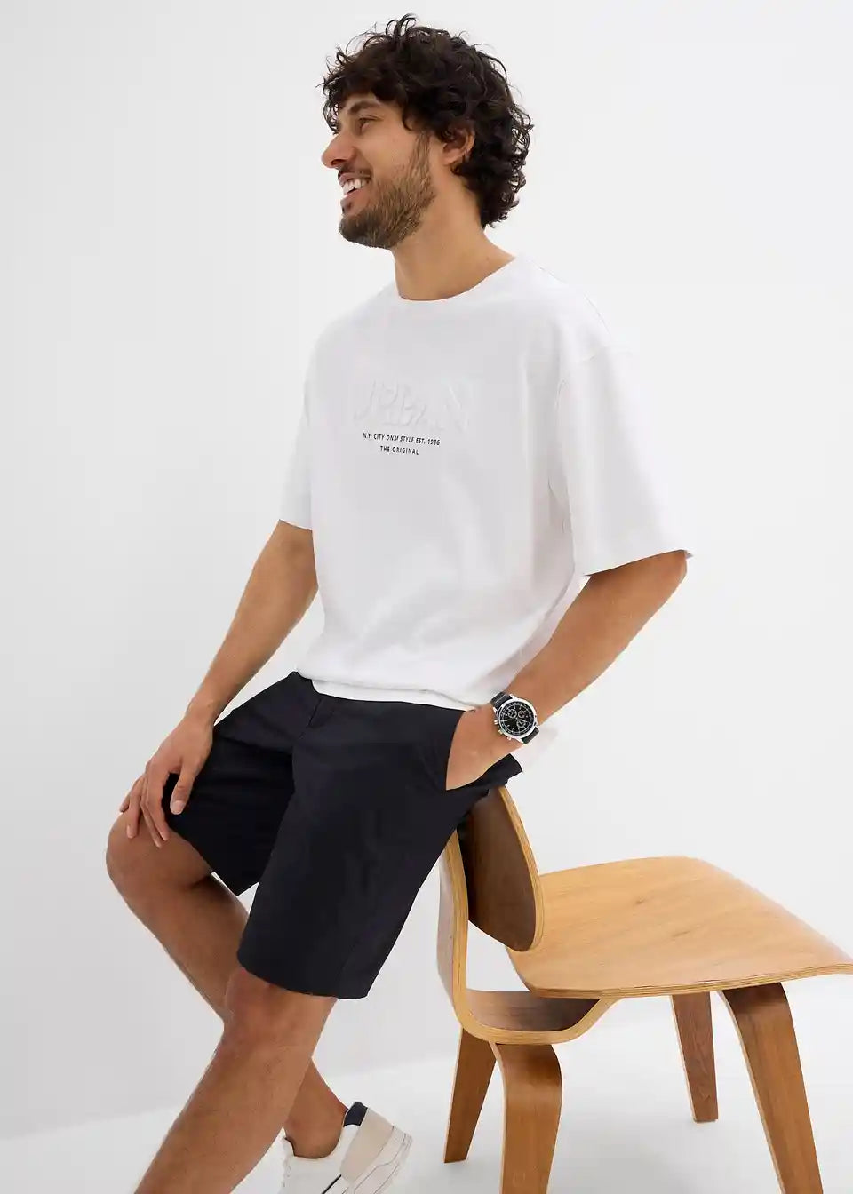 Loose-Fit majica z znižanim ramenom in trendovskim reliefnim tiskom