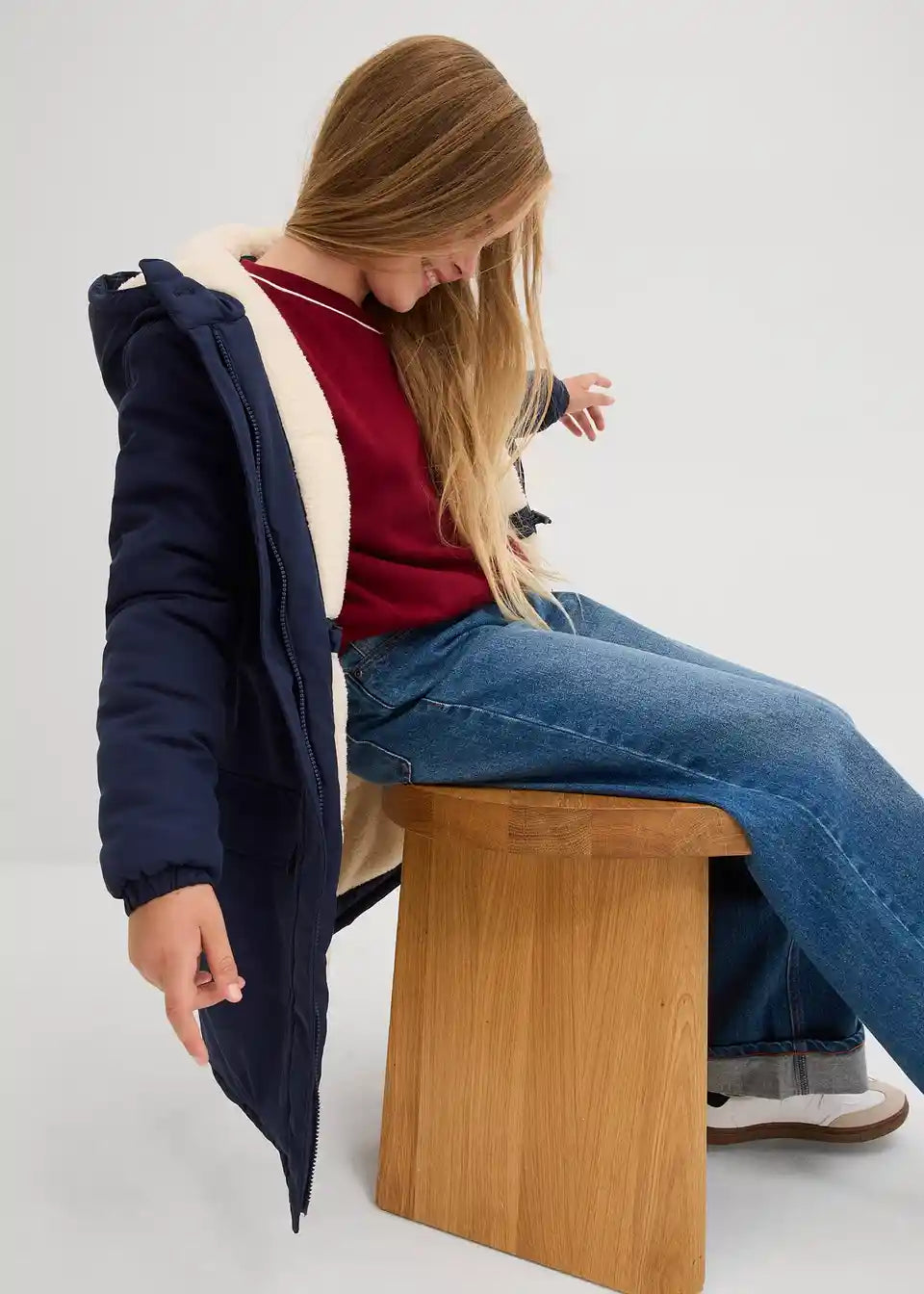 Zimska parka s podlogo iz umetnega ovčjega krzna iz vodoodbojnega materiala