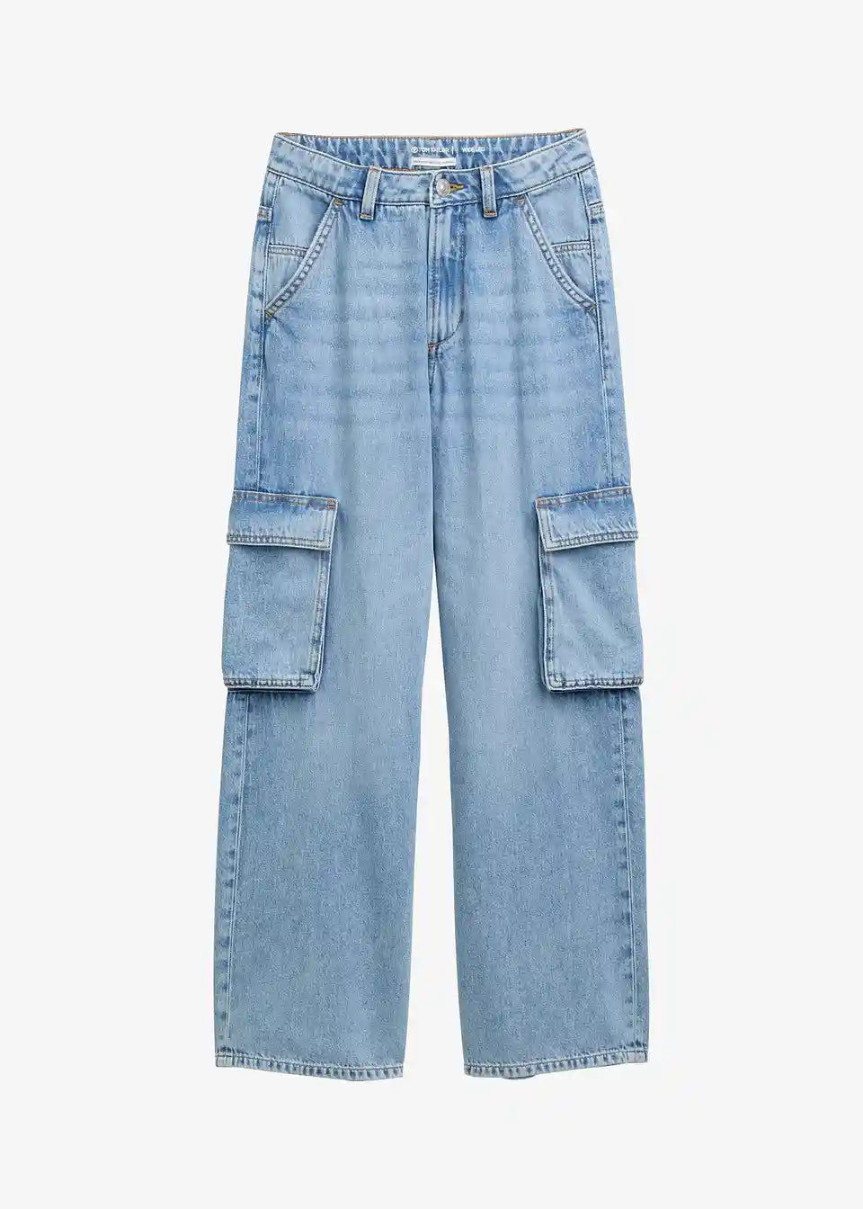 Široke kavbojke Tom Tailor s cargo žepi na hlačnicah, stranskimi všitimi žepi spredaj in našitimi žepi zadaj ter elastičnim trakom v pasu za prilagodljivo nastavitev širine.
